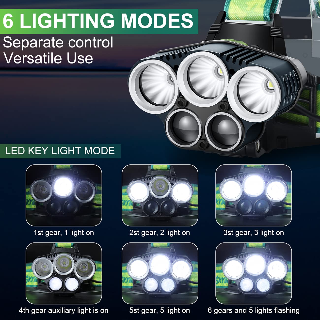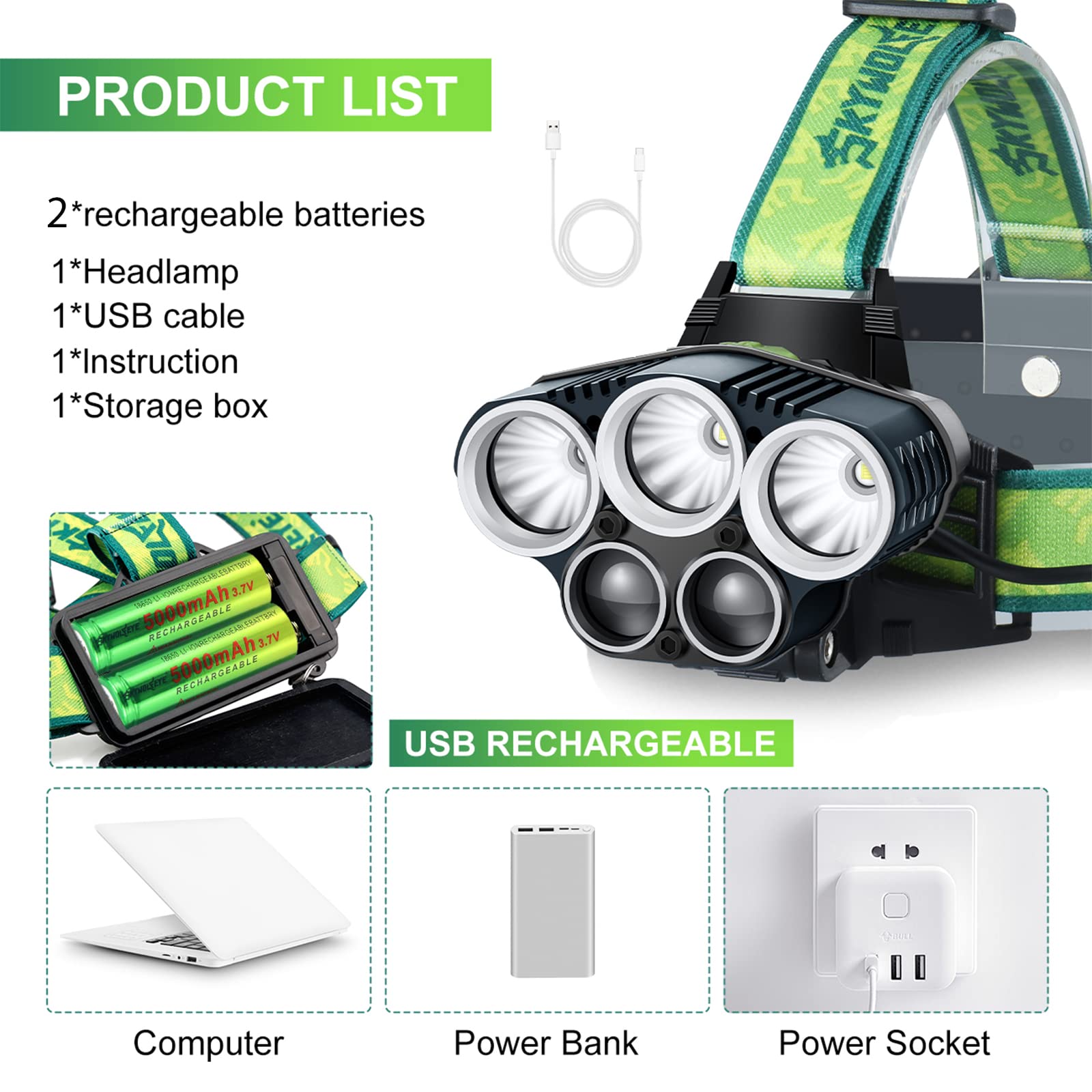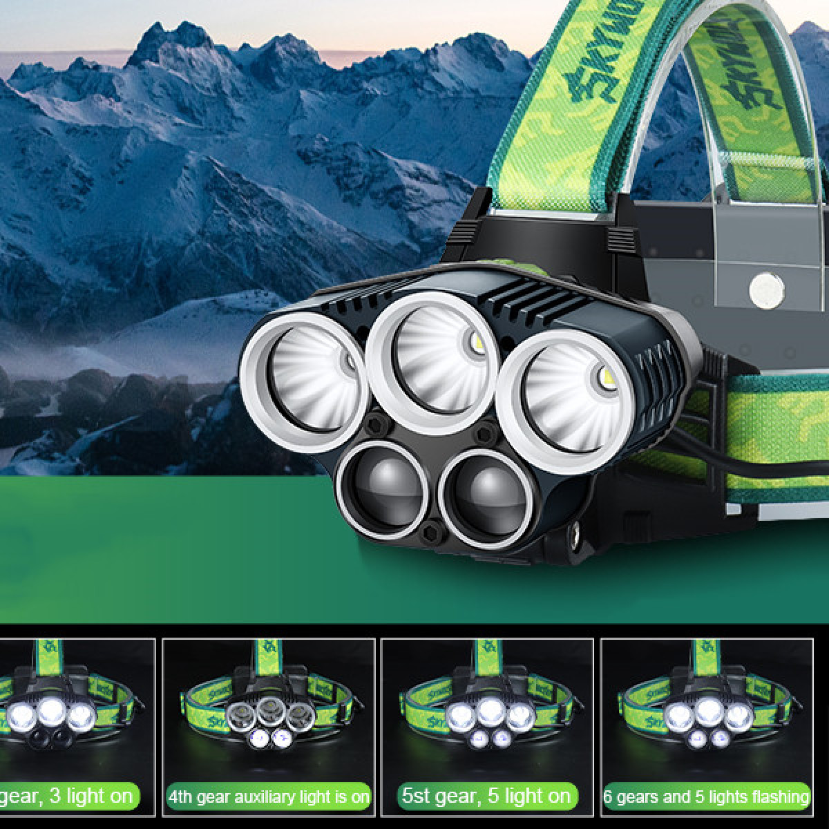 USB Charging Strong Light 5LED Outdoor Camping Headlight