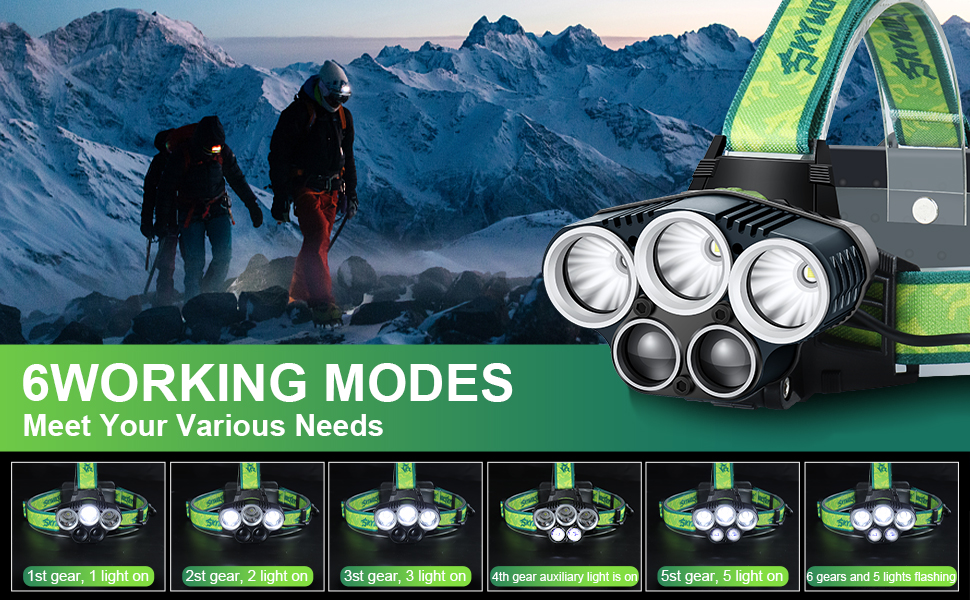 Color classification: Yellow-green light strip (3*T6 white light+2*XPE blue light, yellow-green light strip (3*T6 white light+2*XPE white light), red light strip (3*T6 white light+2*XPE white light)