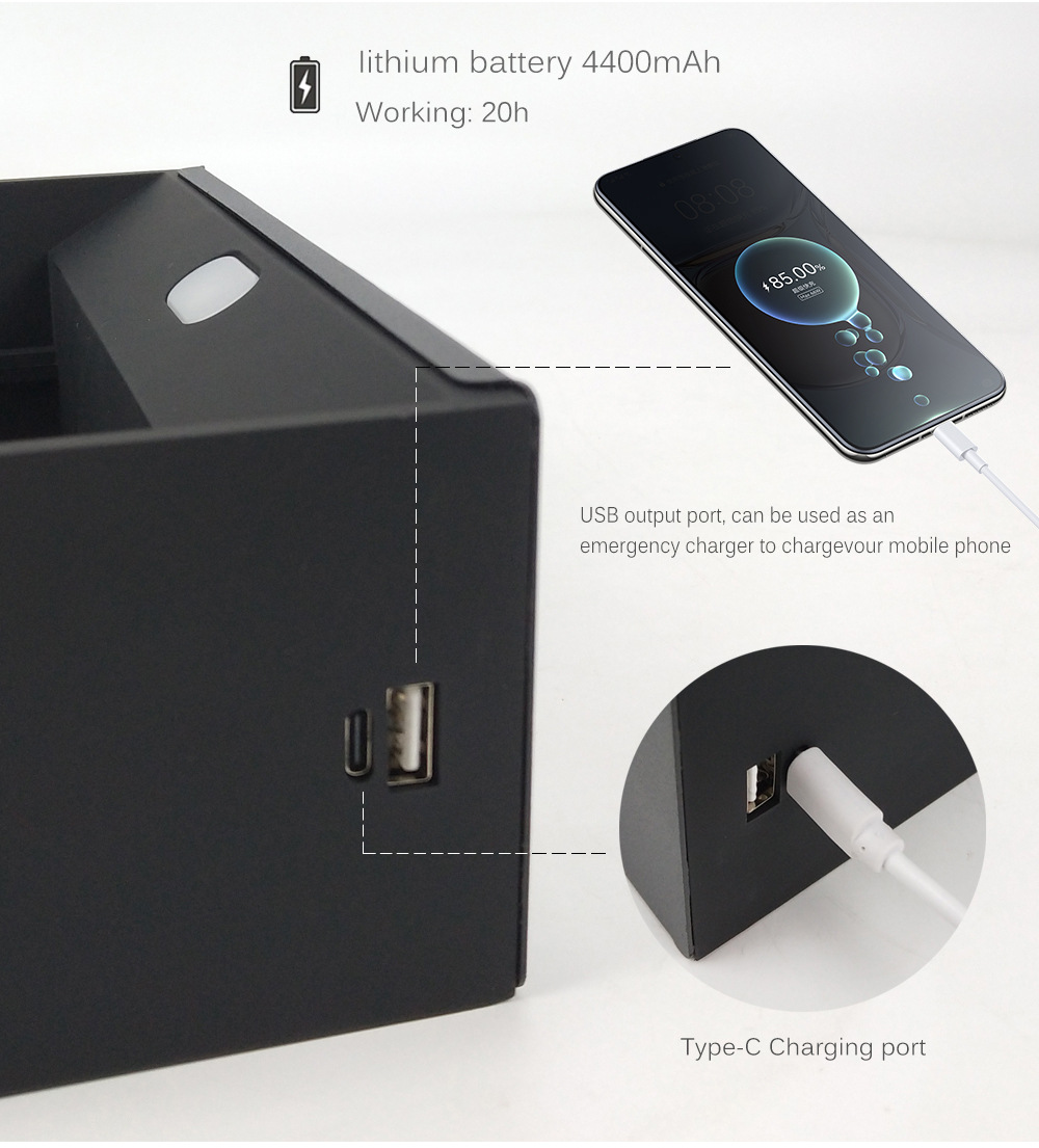 4. Equipped with USB charging cable (no power adapter required, can be connected via USB cable, power bank or computer for convenient charging)