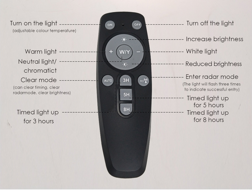 1. Switch control or remote control+3 adjustable modes+radar sensor
