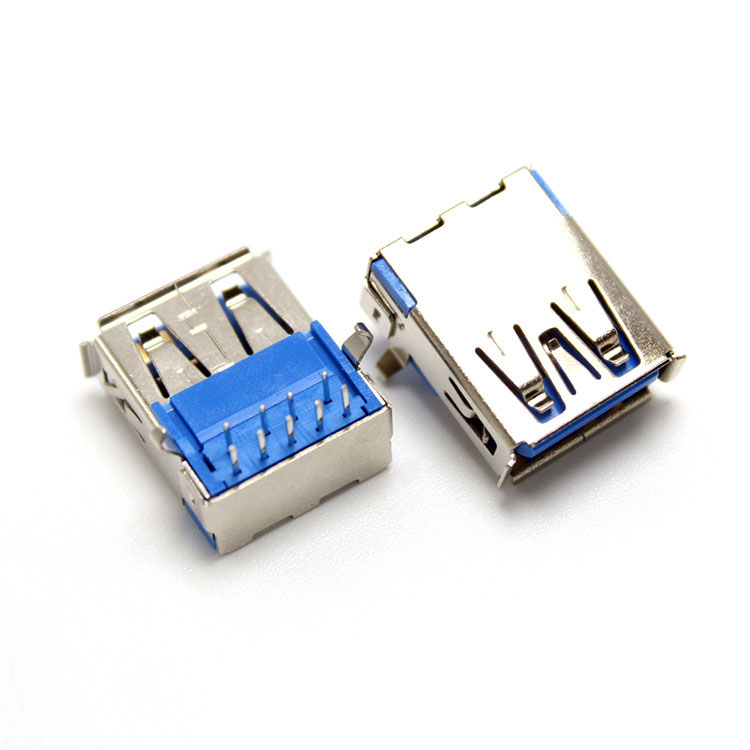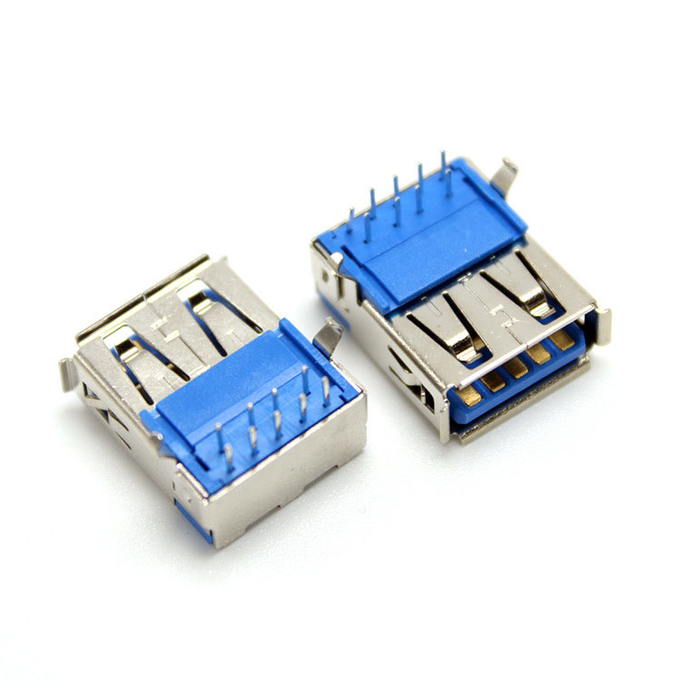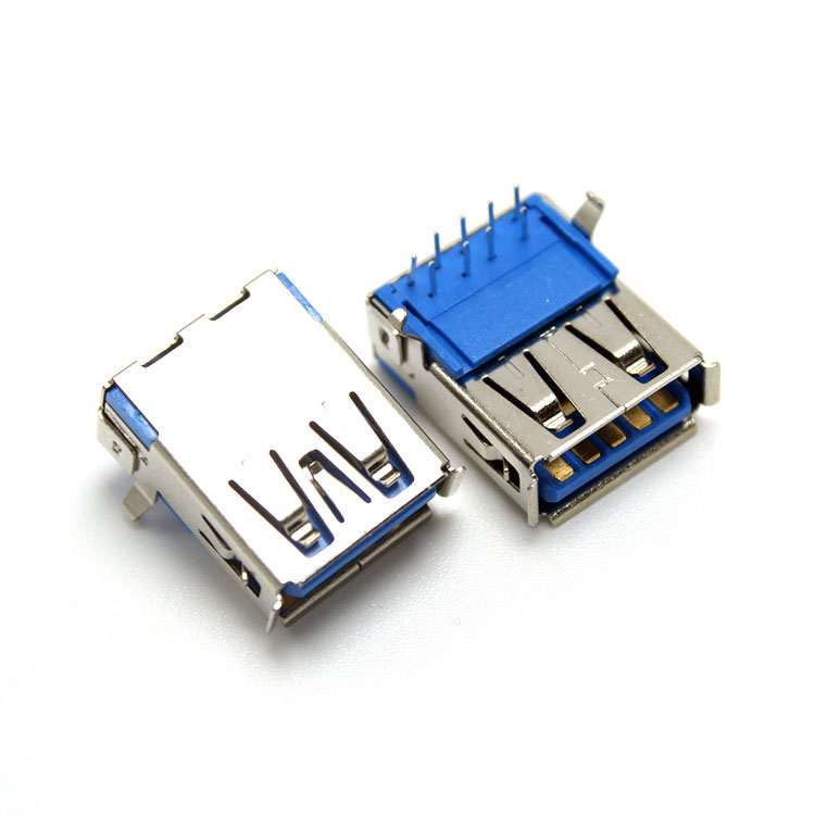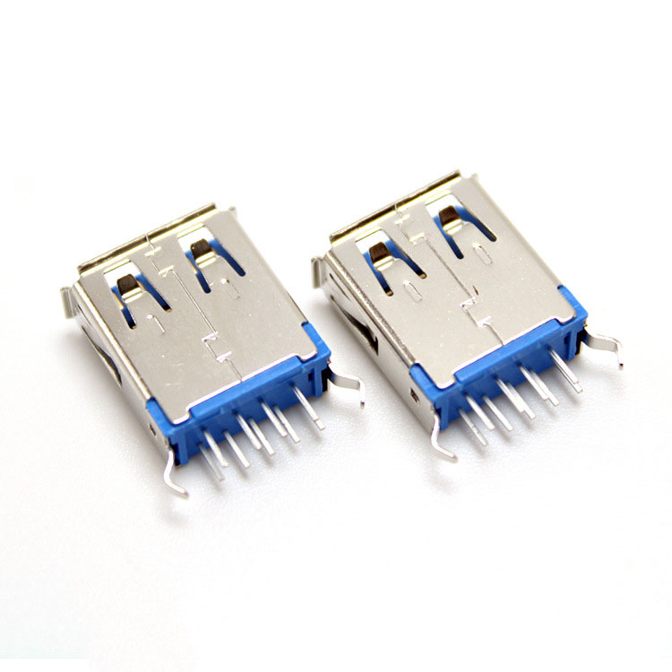 USB Female 3.0 AF Bend-foot Horizontal Socket 90 Degree A Female DIP Blue Glue A Female Connector Copper Shell Iron Shell
