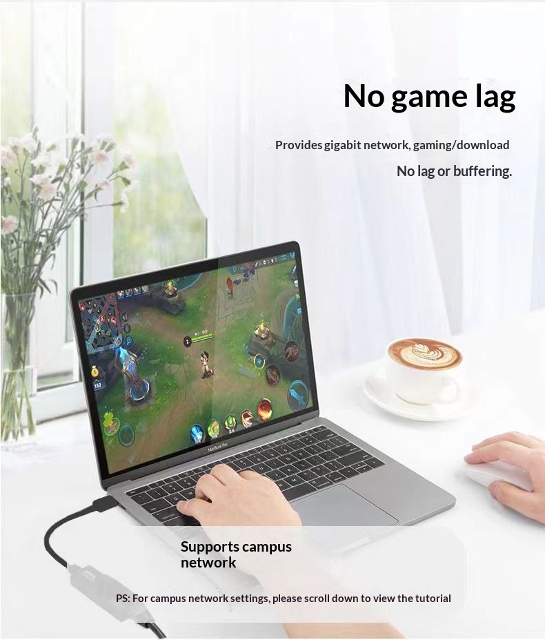 Specifications: USB 3.0 to RJ45 Gigabit Ethernet adapter + three-port USB 3.0 hub; Type-C to RJ45 Gigabit Ethernet adapter + three-port USB 3.0 hub