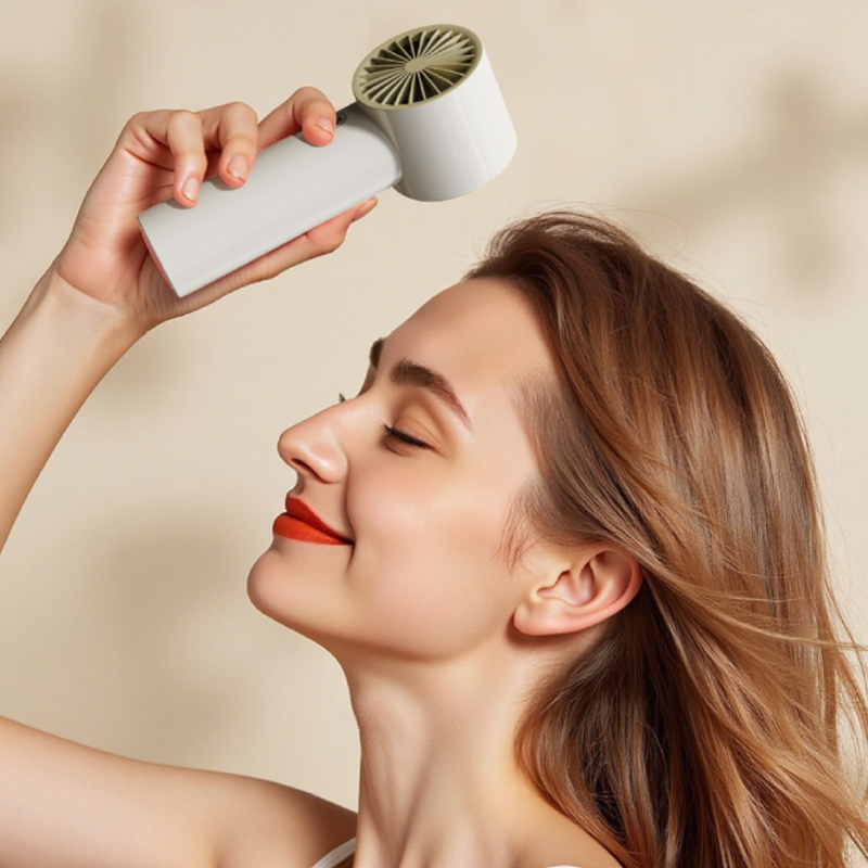 Summer USB rechargeable fan, digital battery capacity display, folding design, with base and lanyard, a multifunctional fan.