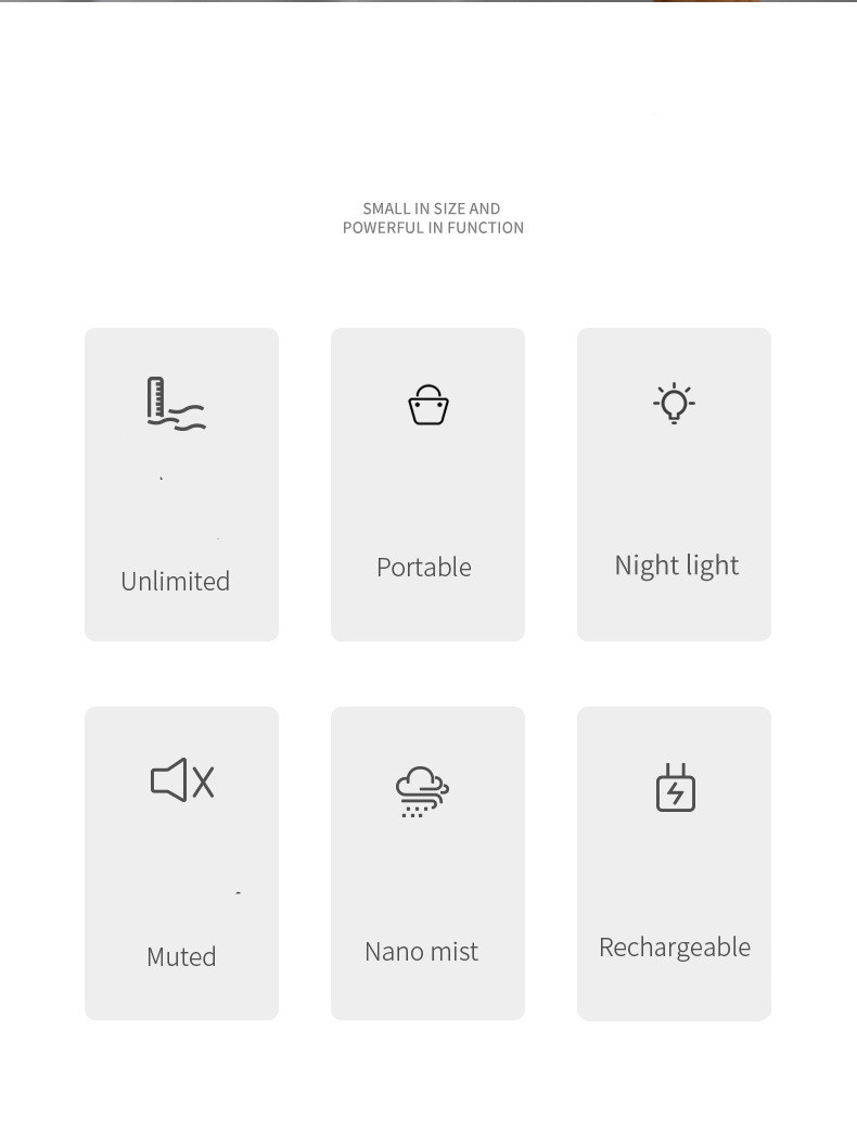 1. Turn on: Press and hold the button for 1.5 seconds to turn on, and continuous spraying starts, the working blue LED is on, and the white night light is on.