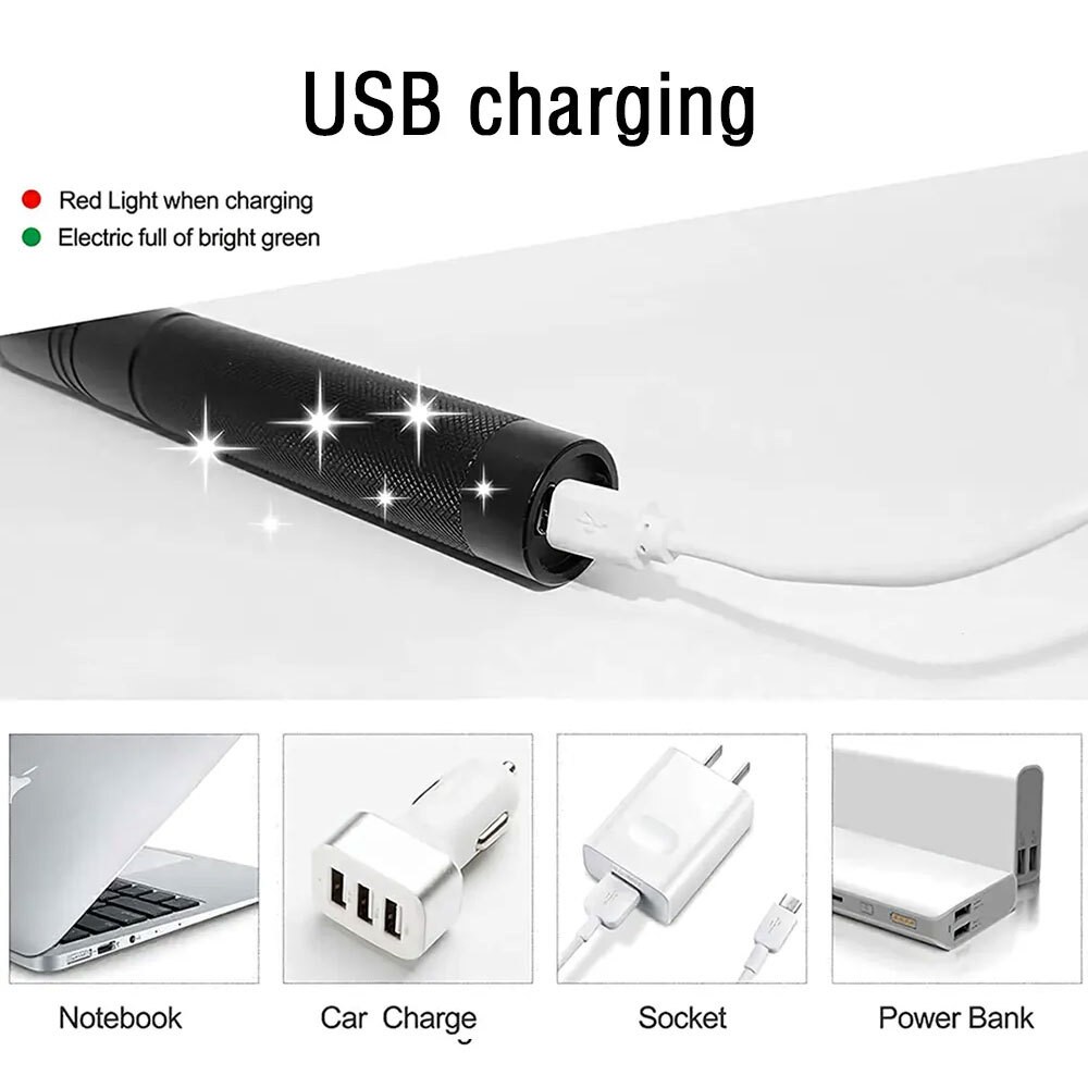 Unlike other laser pens, this laser with a built-in battery, can be charged directly with a USB cable.