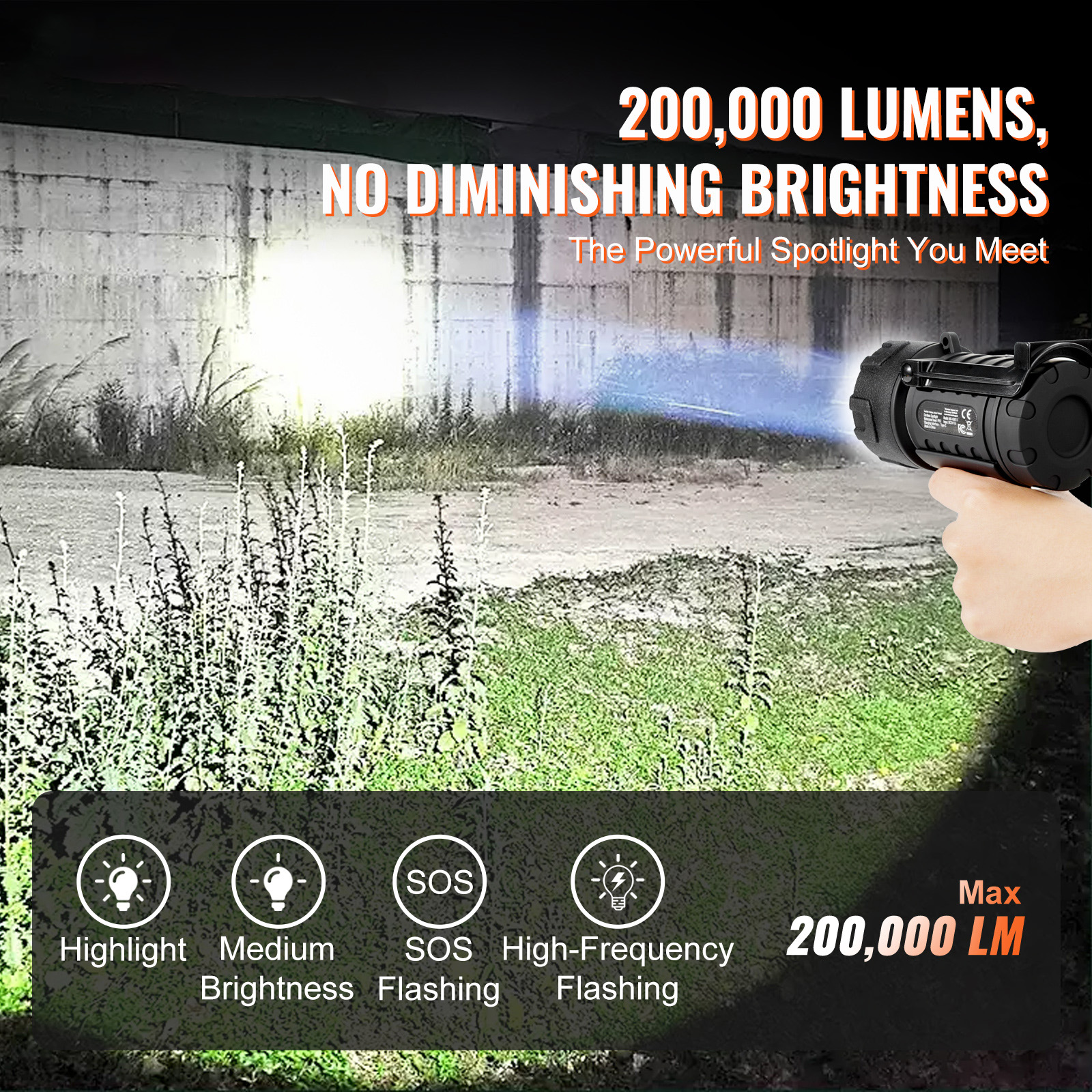 USB Super Bright Rechargeable Spotlight Flashlight 200,000LM Searchlight