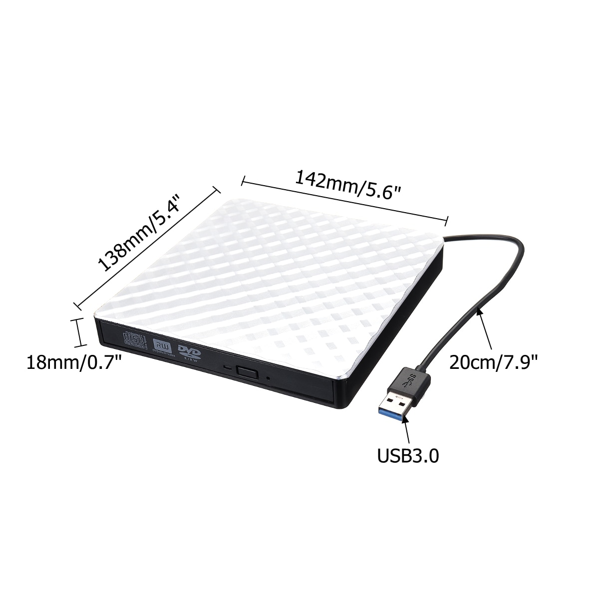 1. Ultra-slim portable: Ultra-slim portable DVD drive, lightweight, which is convenient to use and carry whether at home or travelling.