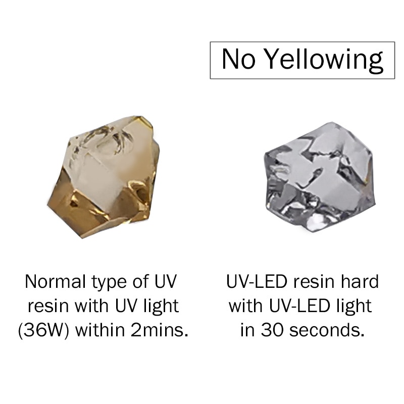 Advanced LED curing resin with high transparency, fast curing, long-term anti-yellowing color protection, usable with LED light, UV light and sunlight.