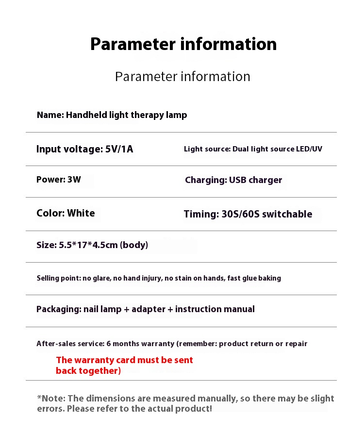 Specifications: UV lamp plug-in, UV lamp USB power storage, whitening red light white, whitening red light pink, ultraviolet lamp plug-in (purple), handheld light (purple), ultraviolet lamp power storage (purple)