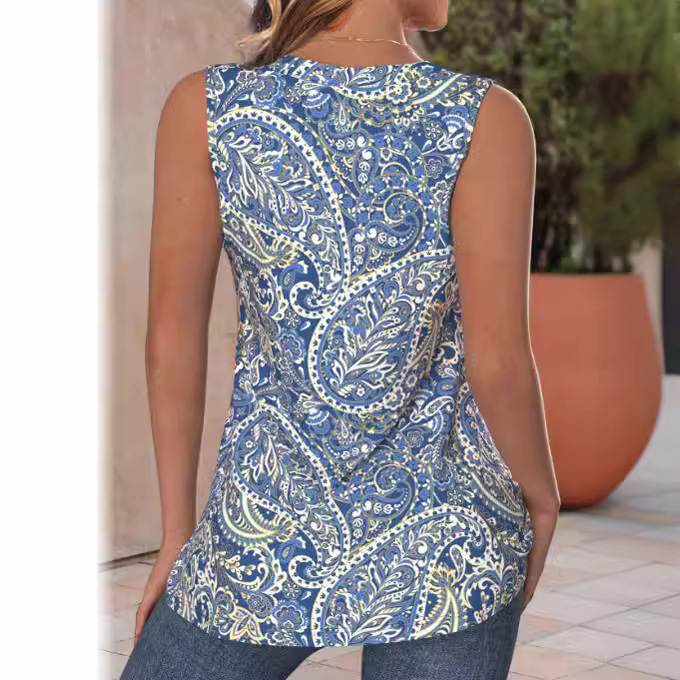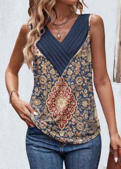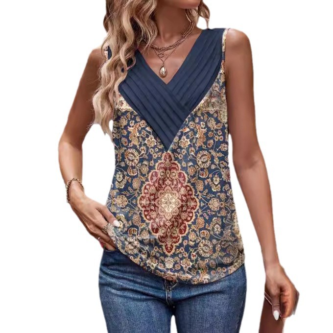 V-collar Contrast Color Customized Printed Sleeveless Casual Vest