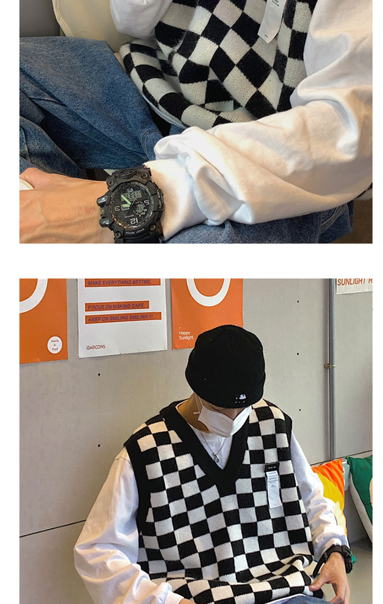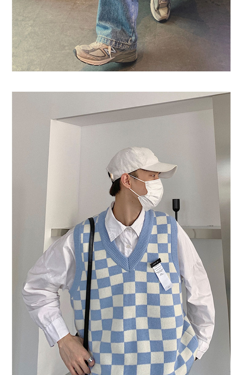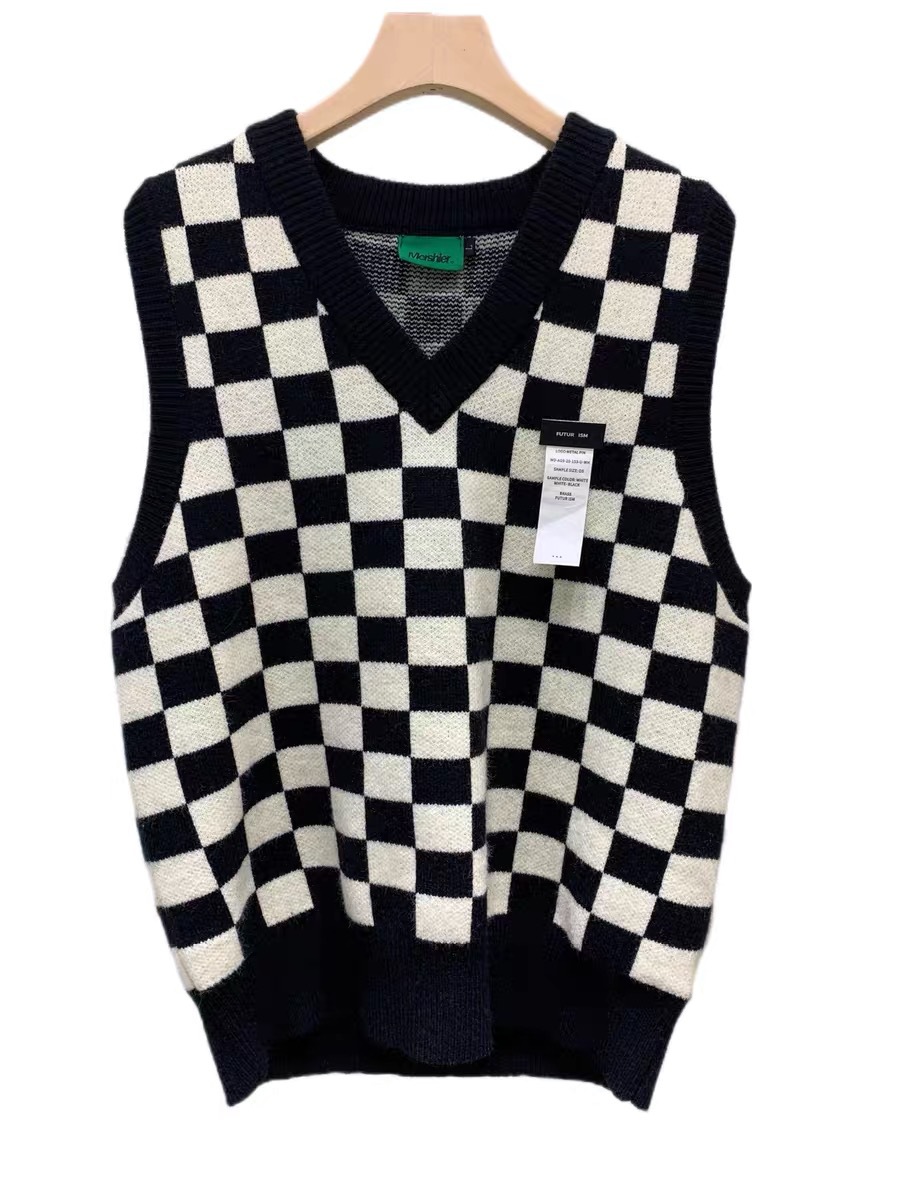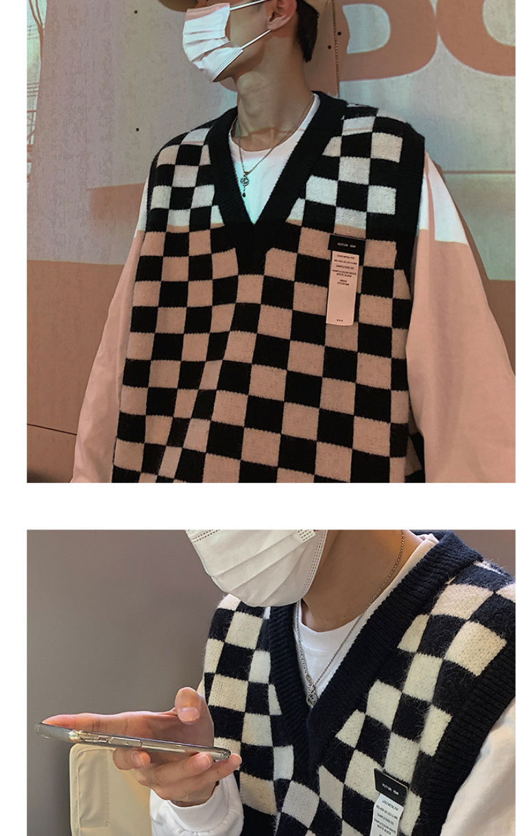 V-collar Preppy Style Chessboard Plaid Sweater Vest Knitted Sweater Men