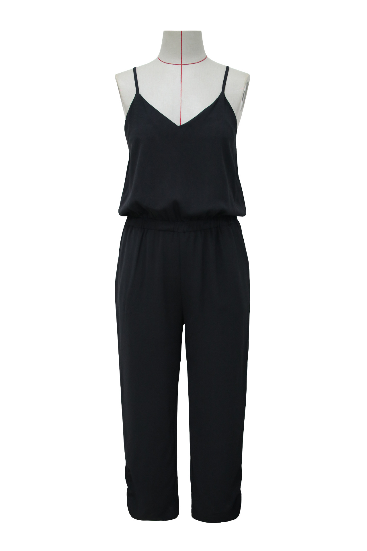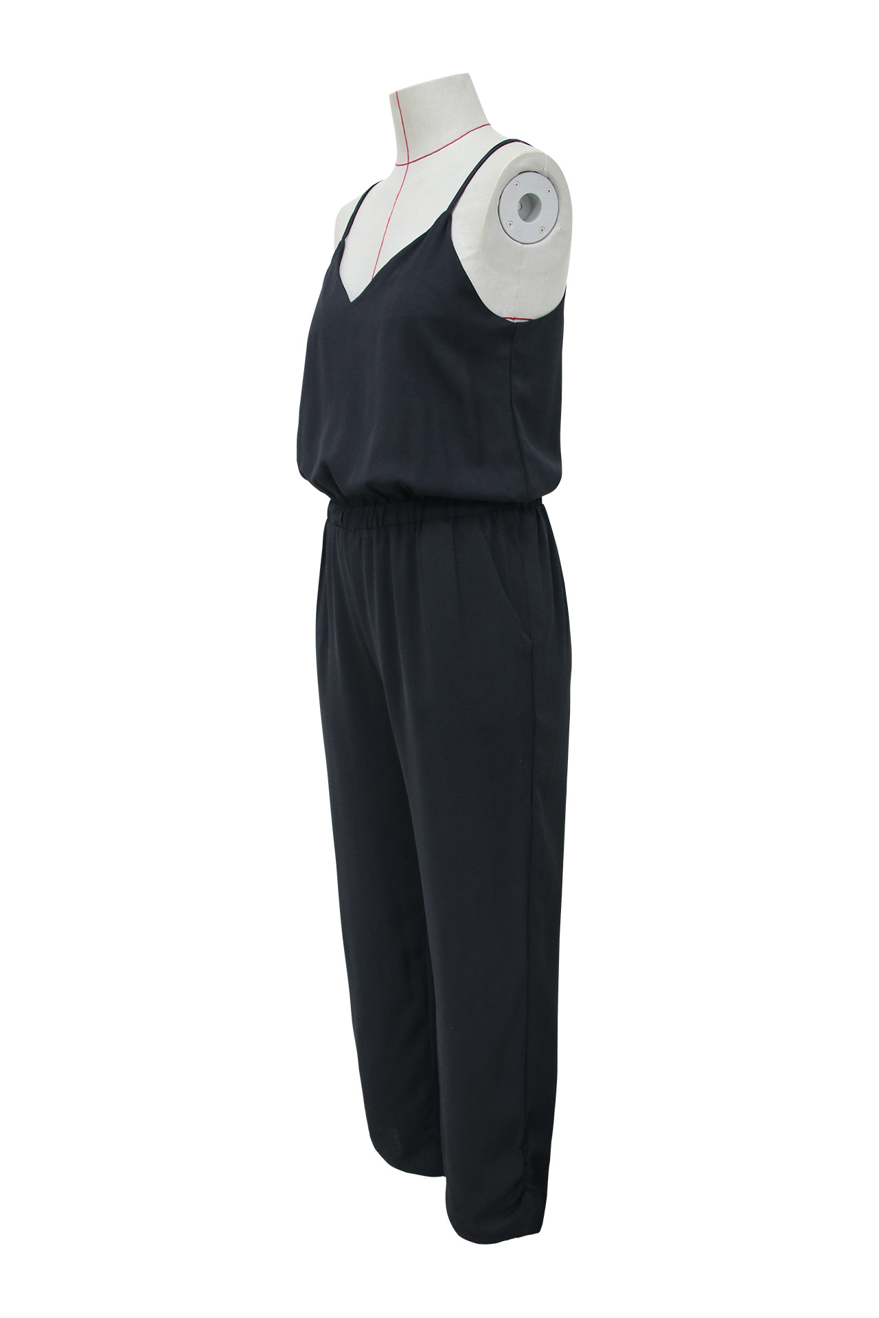 V-neck Brace Pleating Backless With Pockets Casual Jumpsuit