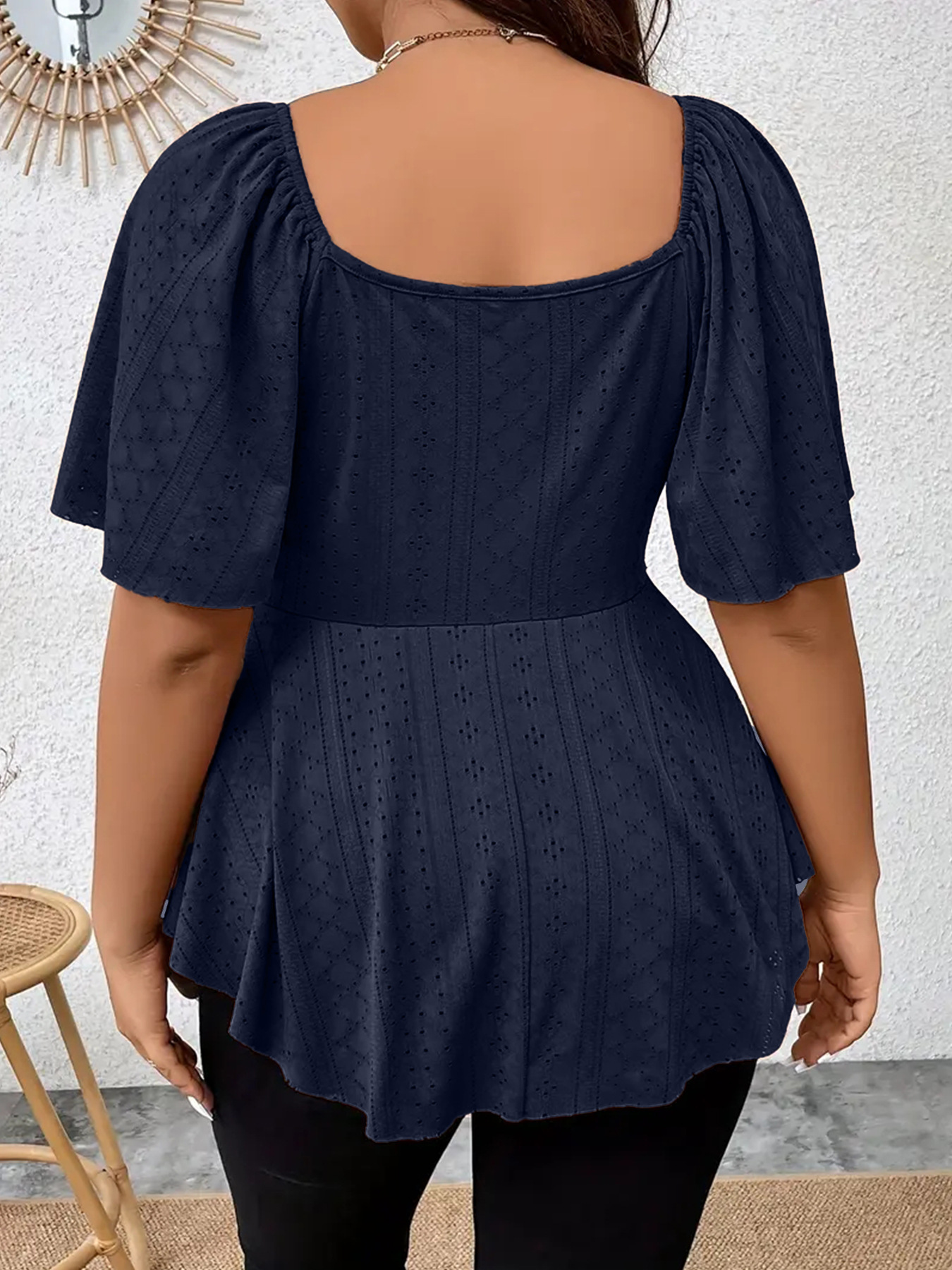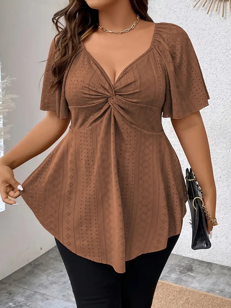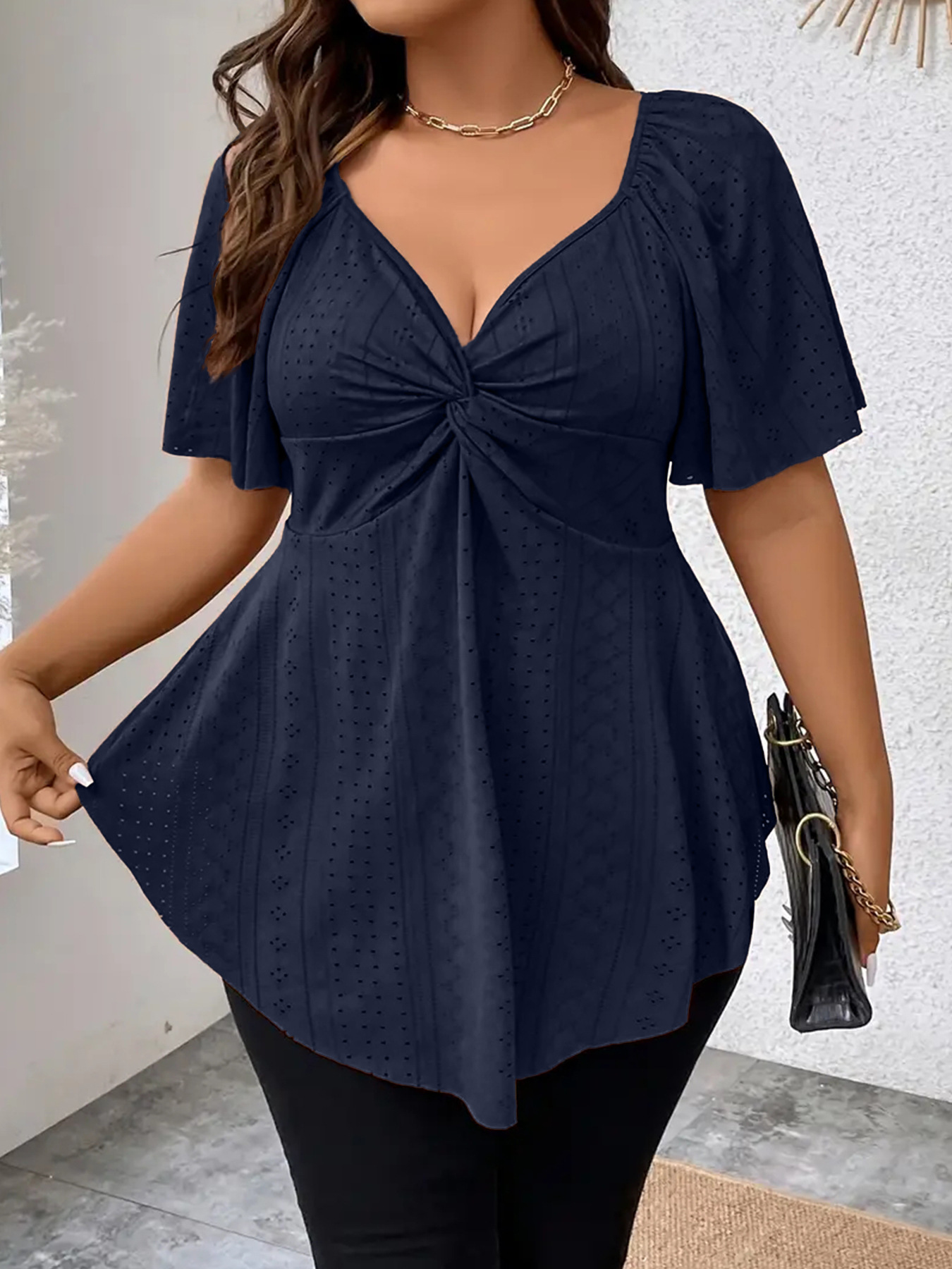 V-neck Drawstring-waist Sexy Short-sleeve Solid-color T-shirt