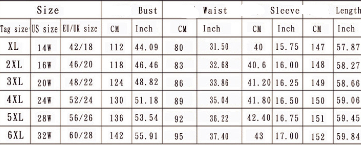 Sizes: XL, XXL, XXXL, 4XL, 5XL, 6XL