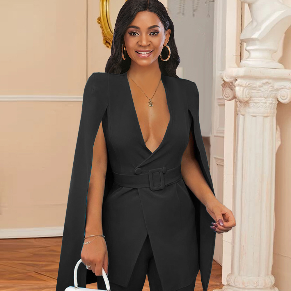 V-neck Flying Sleeve Loose Button Ruffle Suit
