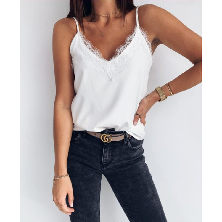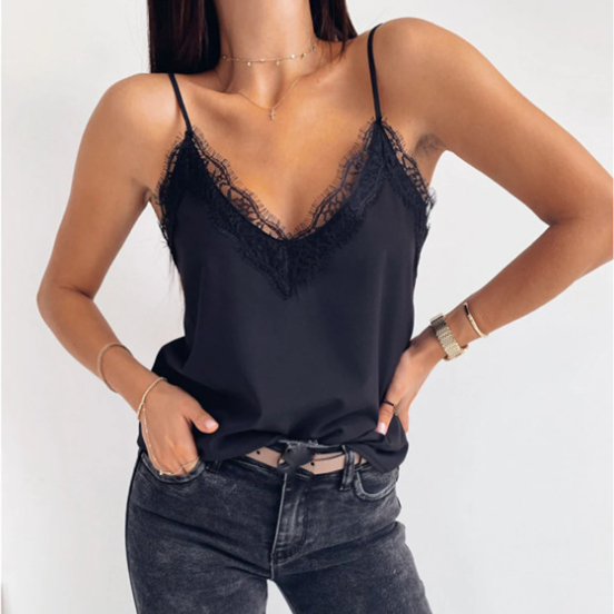 V-neck Lace-trimmed Solid-color Sexy Figure-hugging Womens Camisole