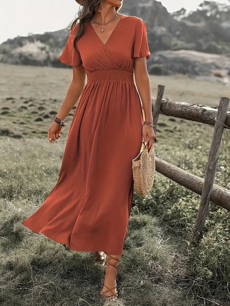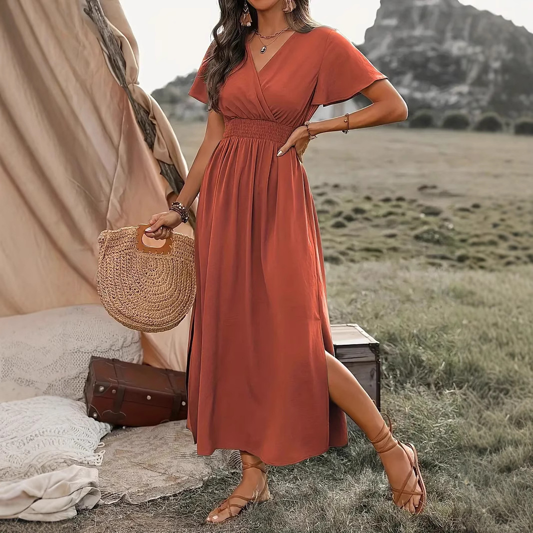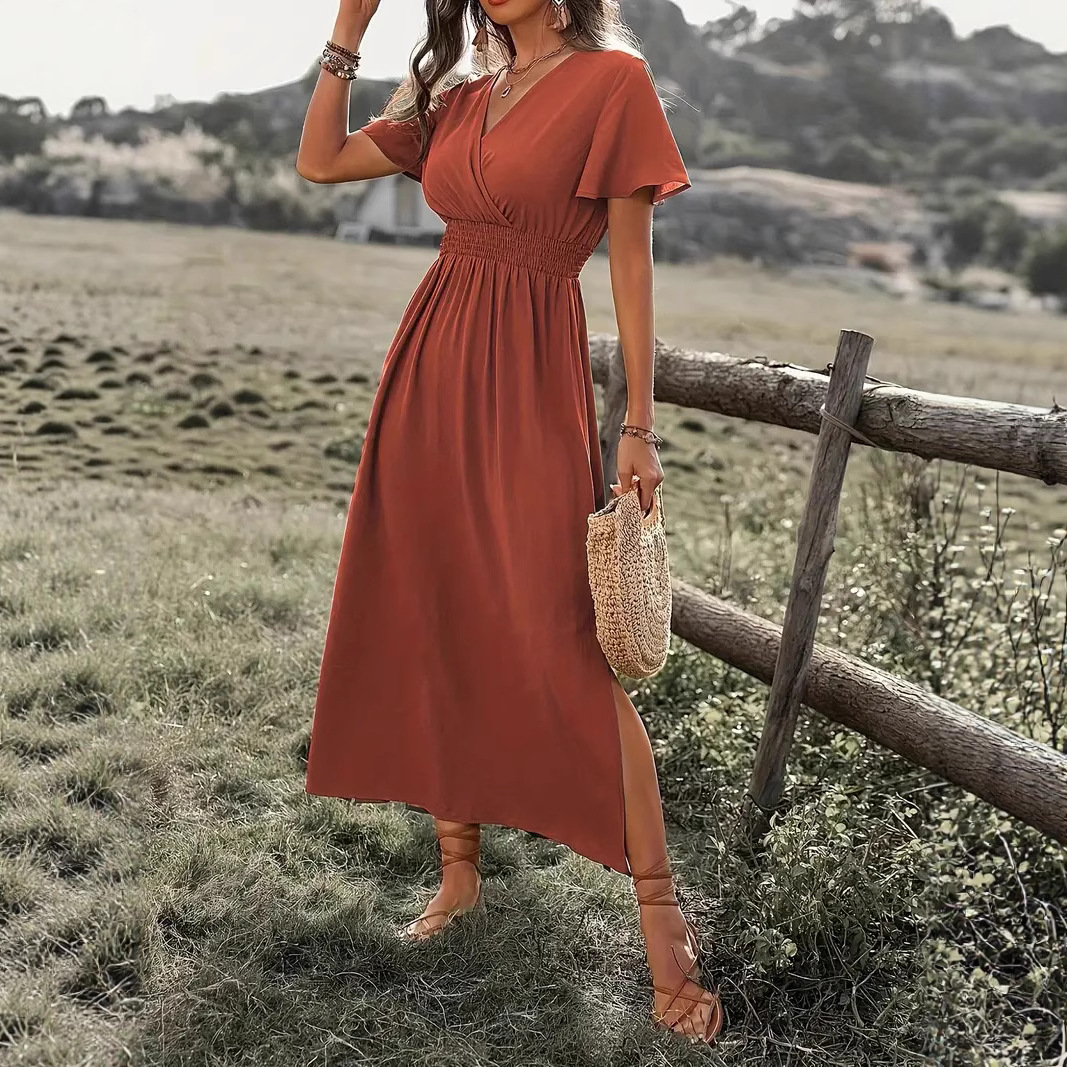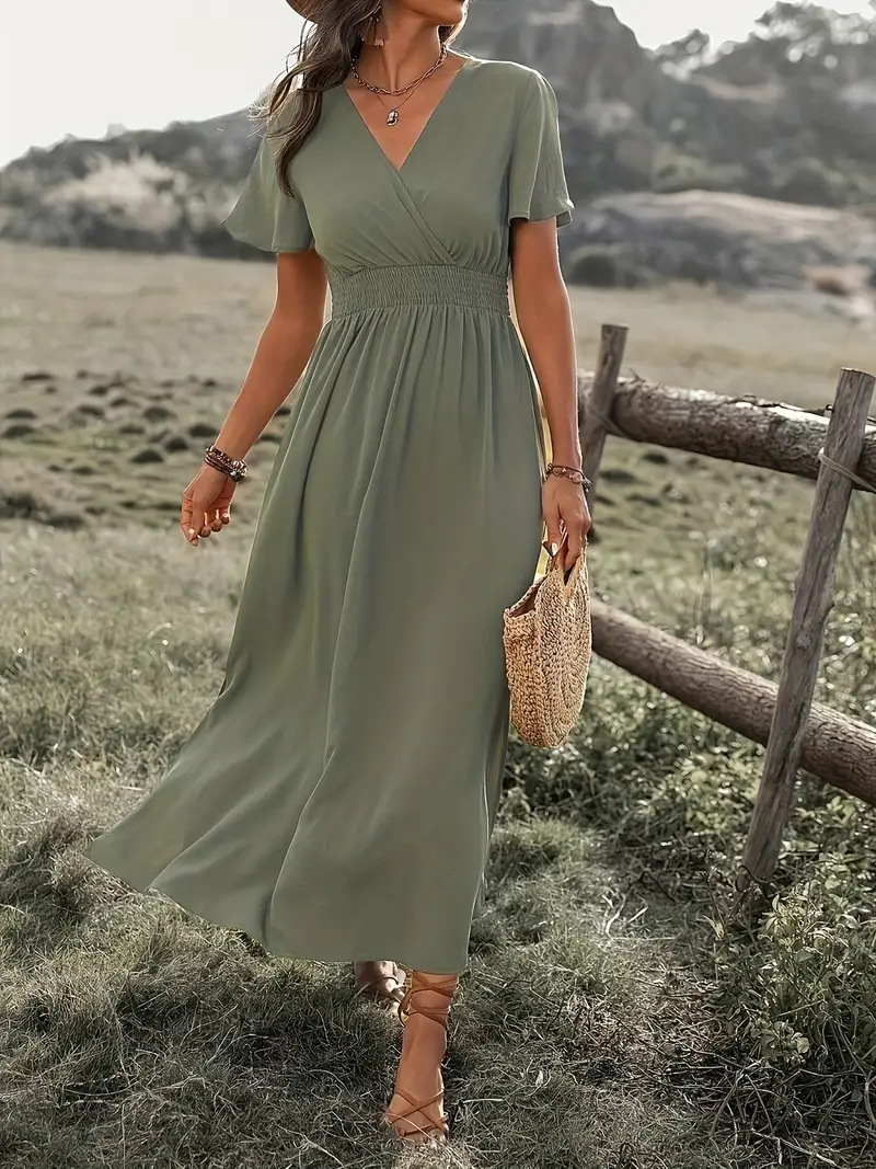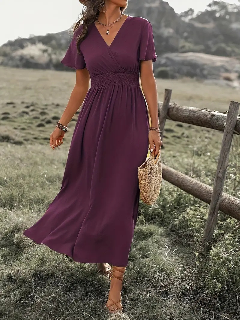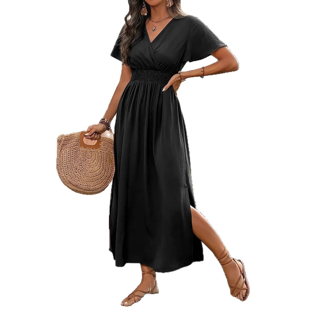V-neck Long Skirt Casual Resort Short-sleeve Dress