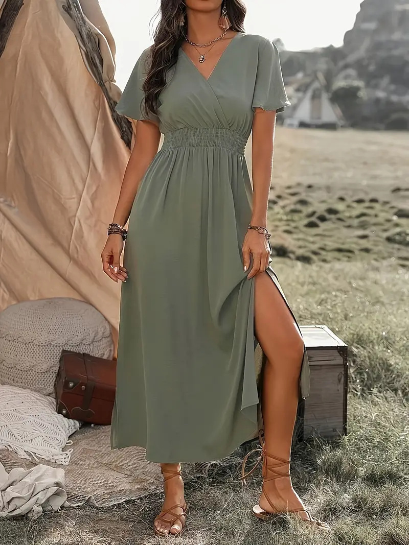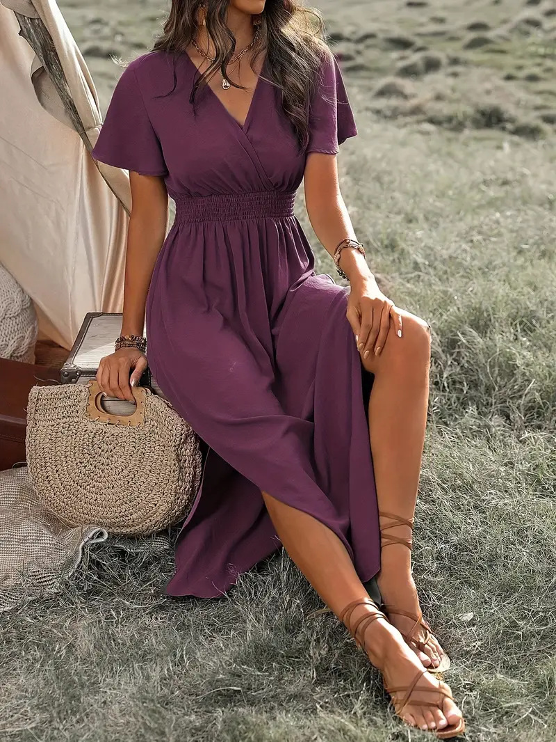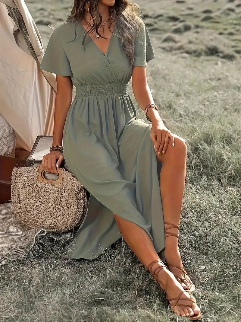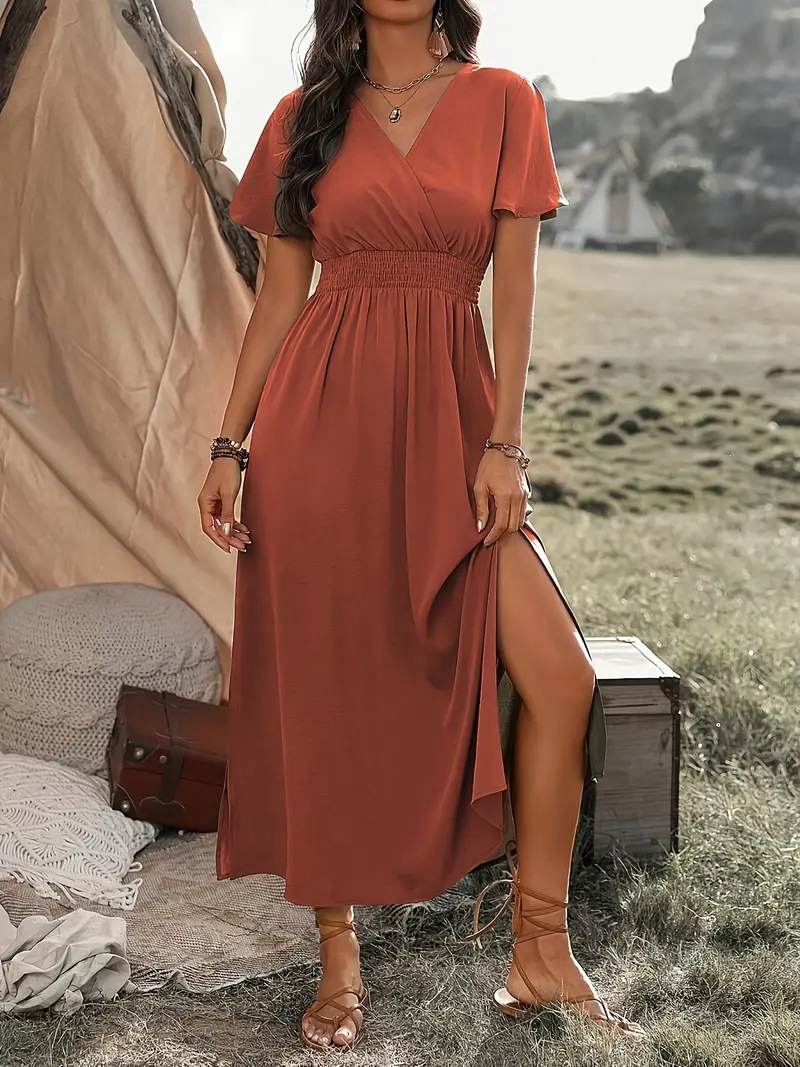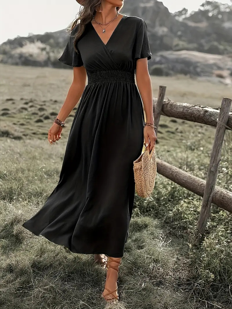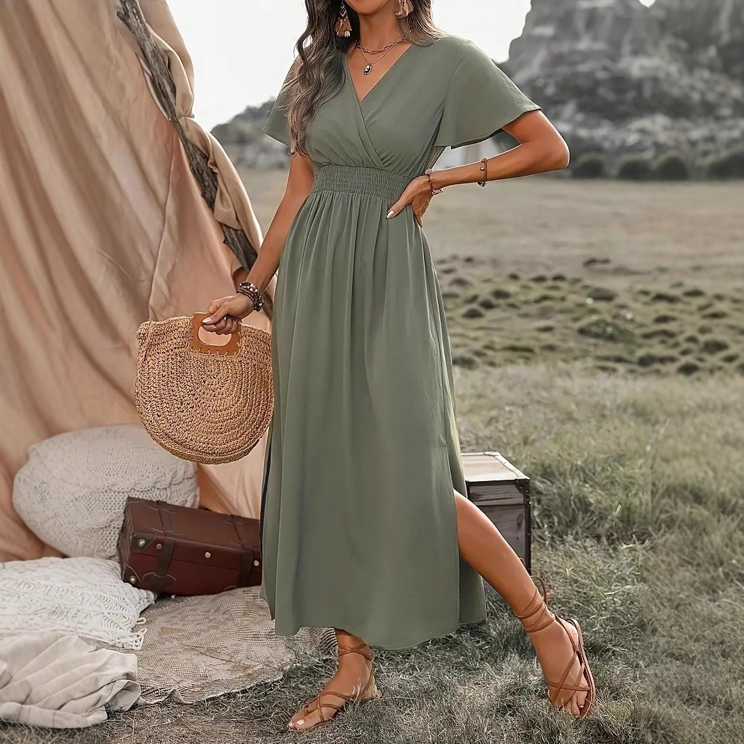 V-neck Long Skirt Casual Resort Short-sleeve Dress