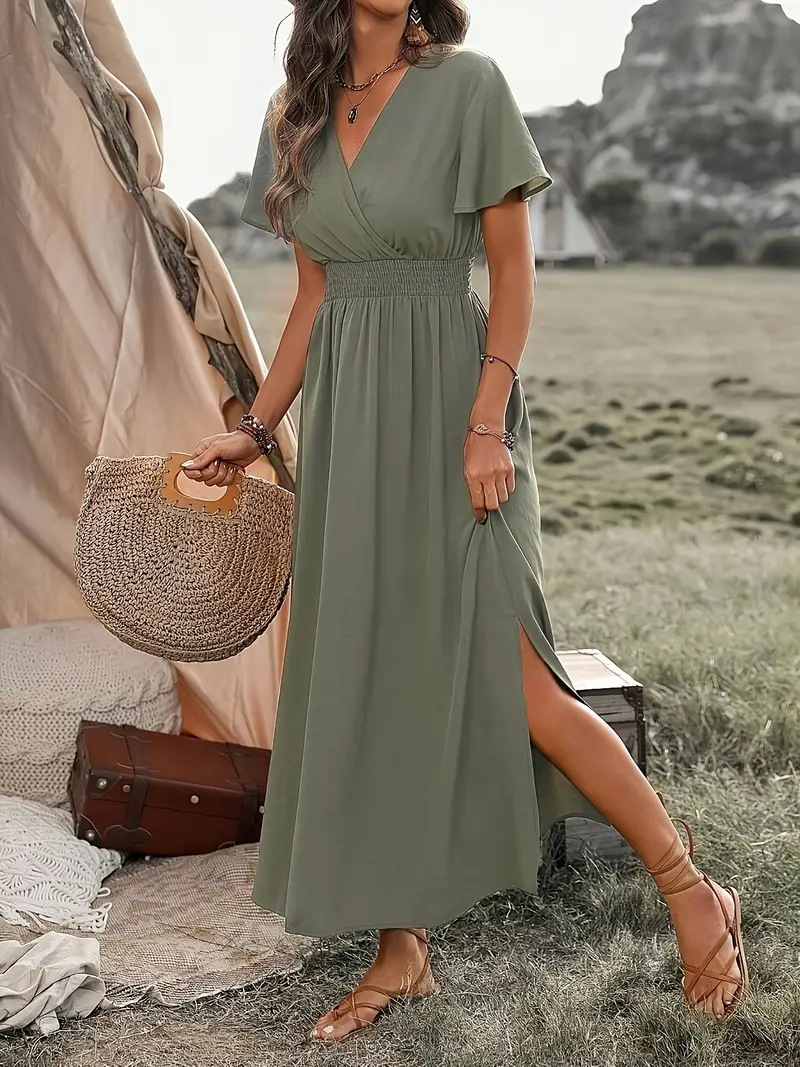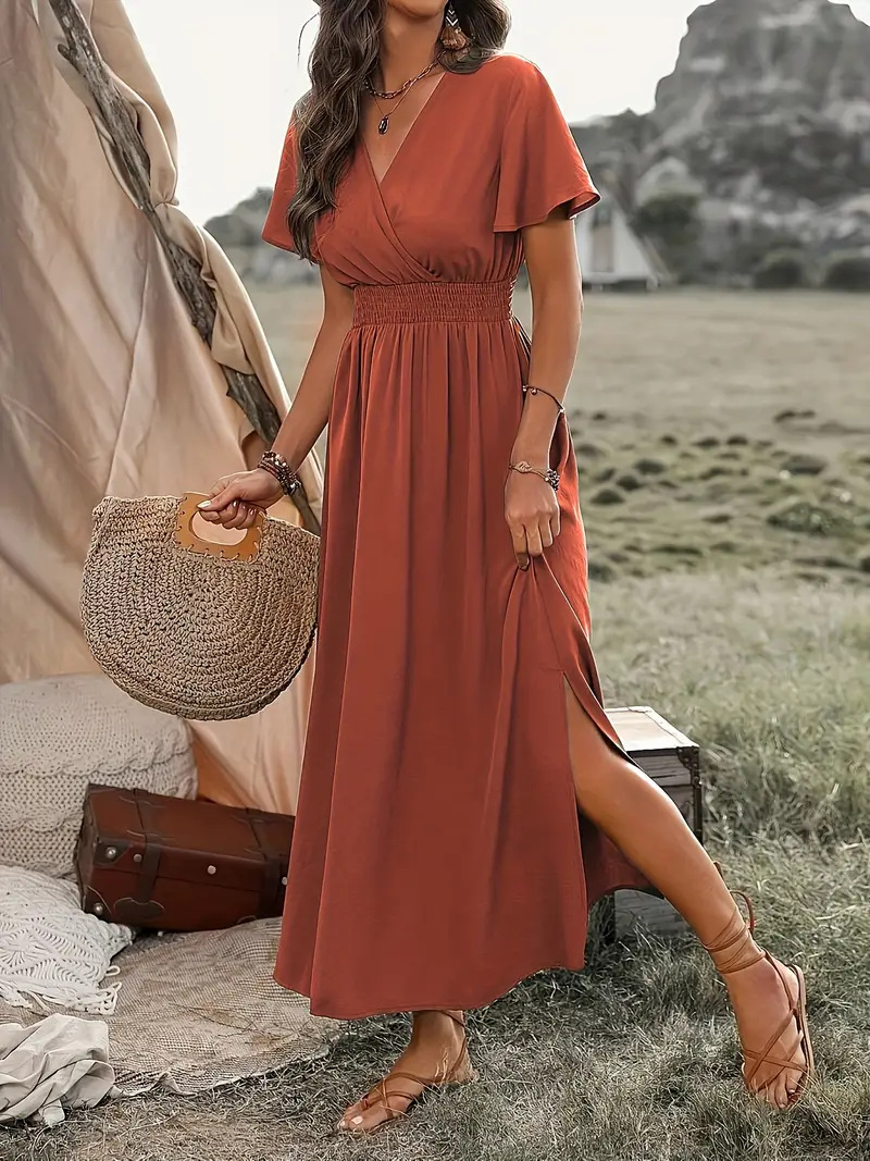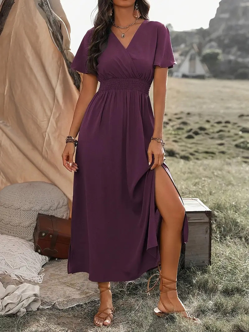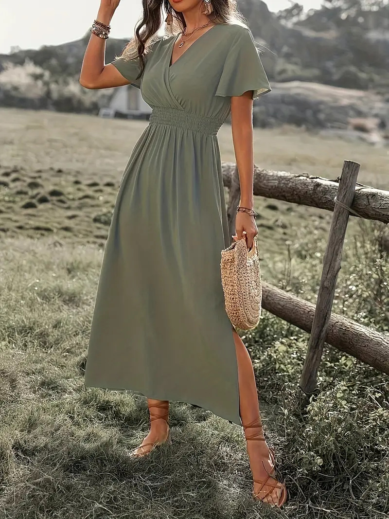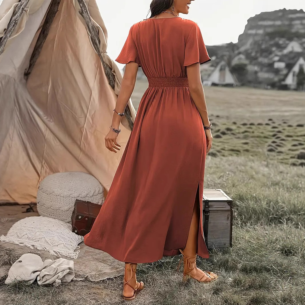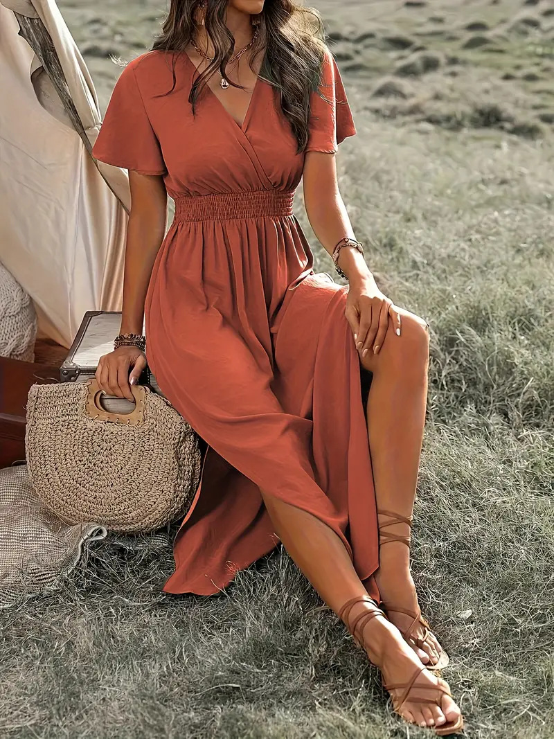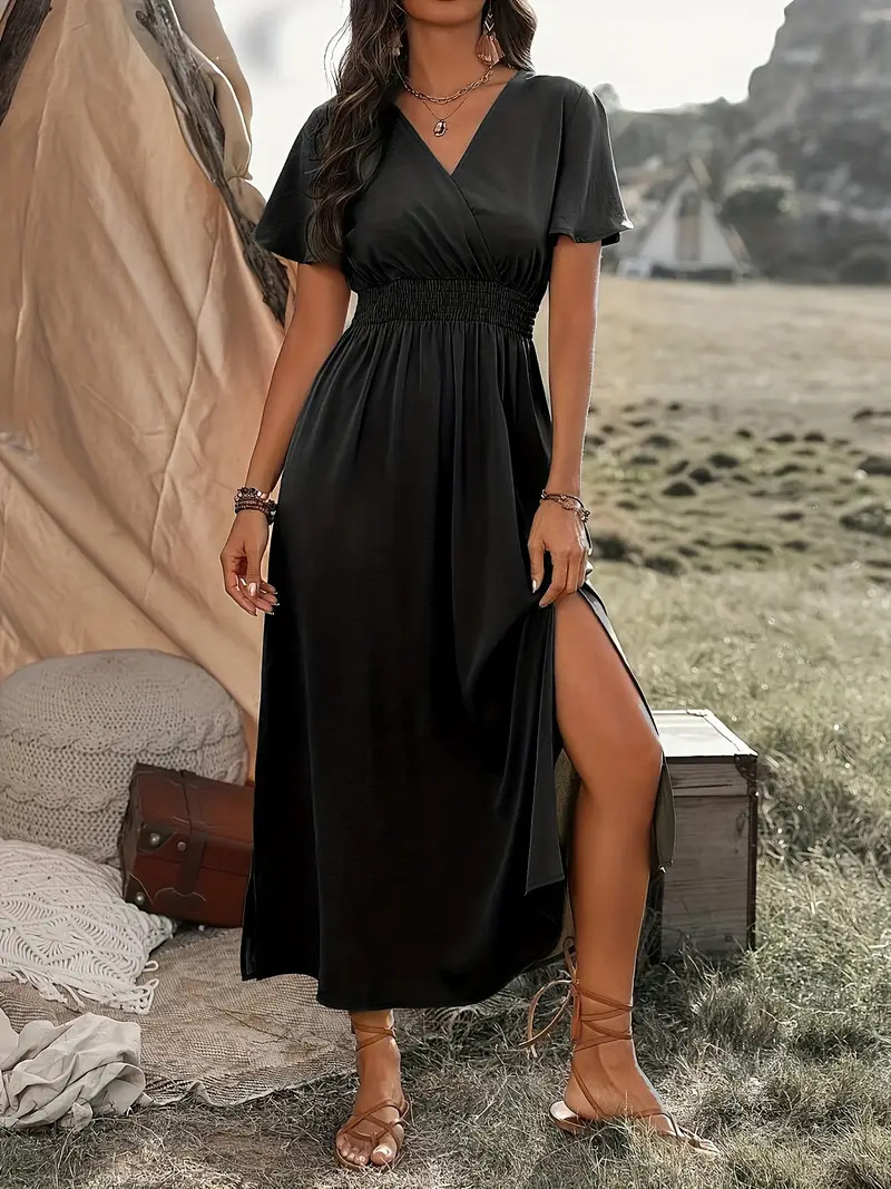 V-neck Long Skirt Casual Resort Short-sleeve Dress