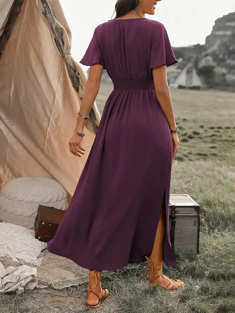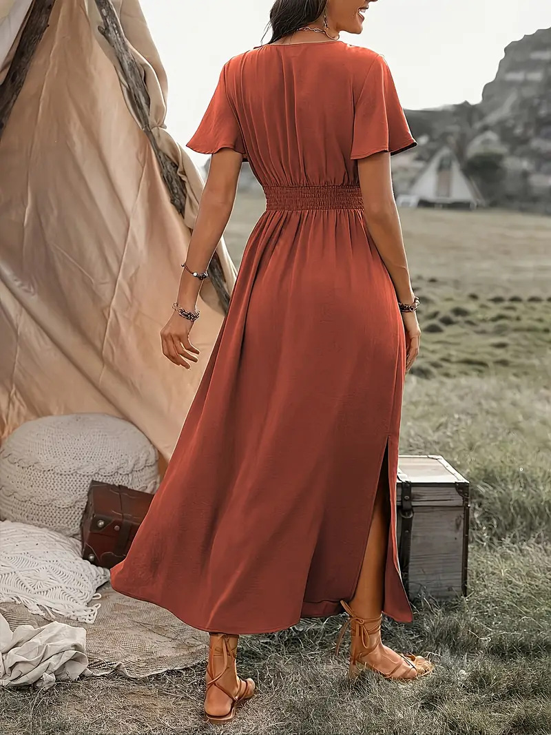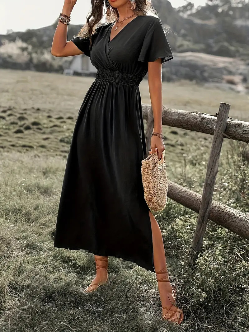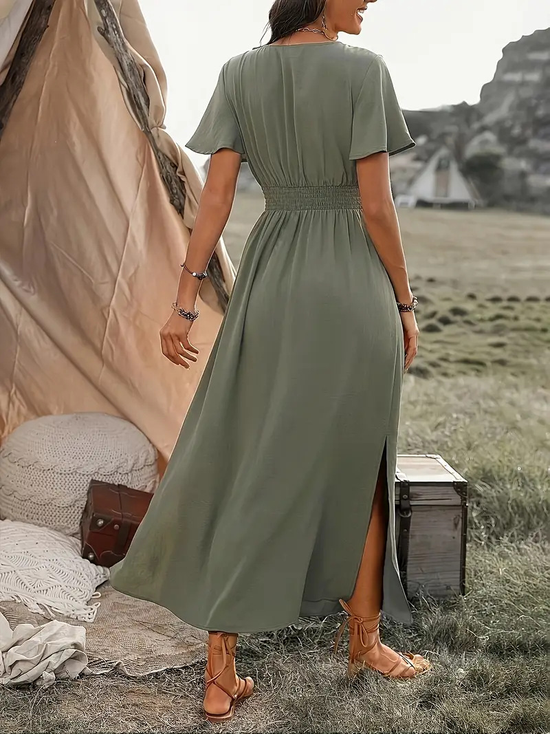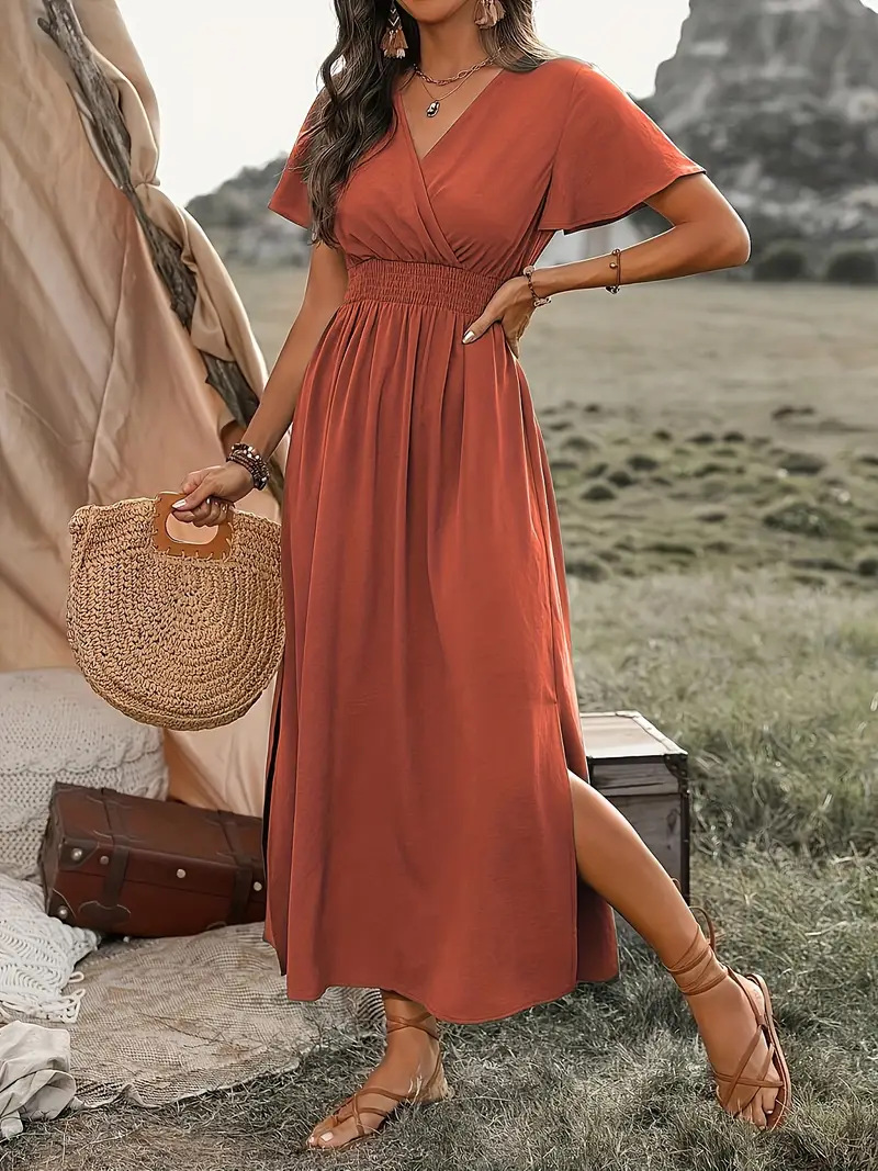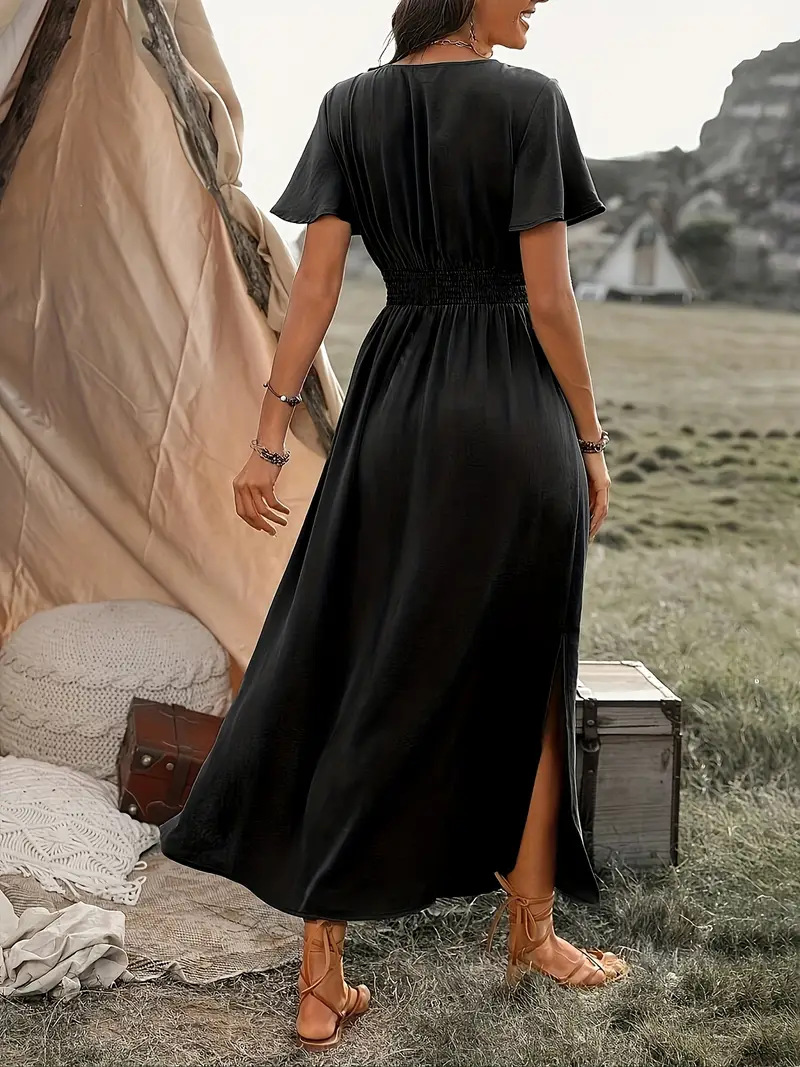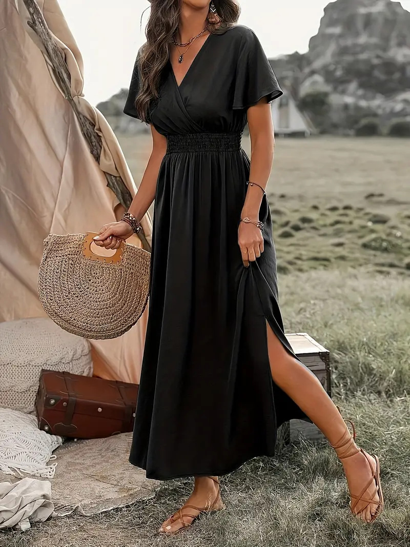 V-neck Long Skirt Casual Resort Short-sleeve Dress