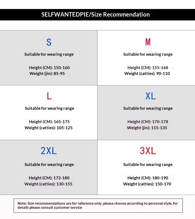 1. Asian sizes are 1 to 2 sizes smaller than European and American people. Choose the larger size if your size between two sizes. Please allow 2-3cm differences due to manual measurement. 2. Please check the size chart carefully before you buy the item, if you don't know how to choose size, please contact our customer service. 3.As you know, the different computers display colors differently, the color of the actual item may vary slightly from the following images.