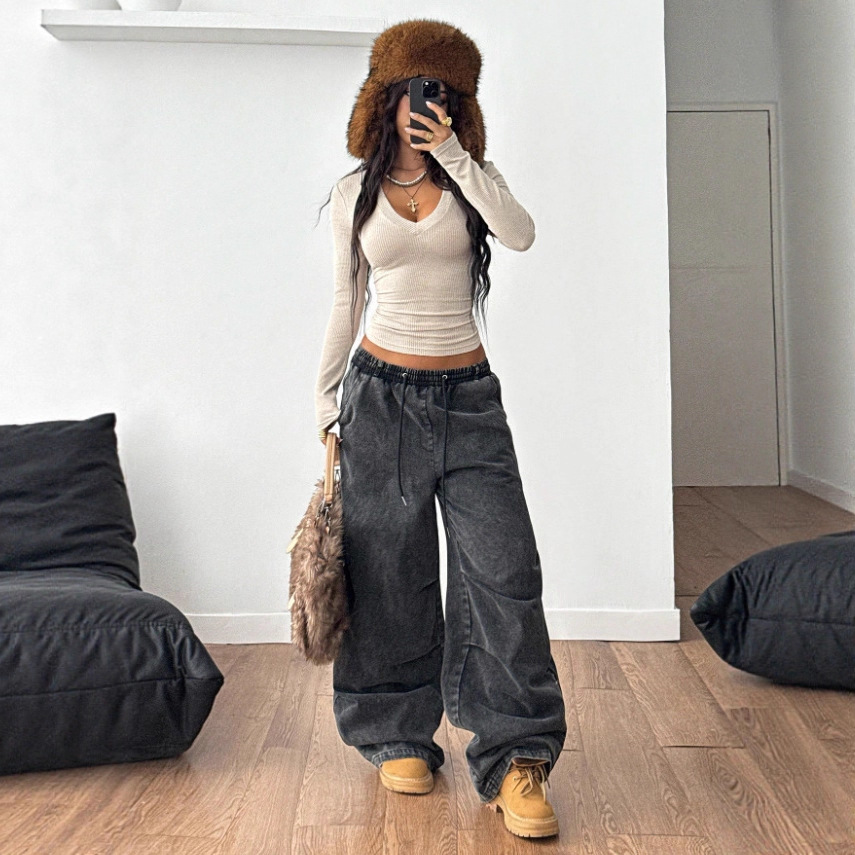 Trendy elements: V-neck, solid color, versatile, slim fit, ribbed knit