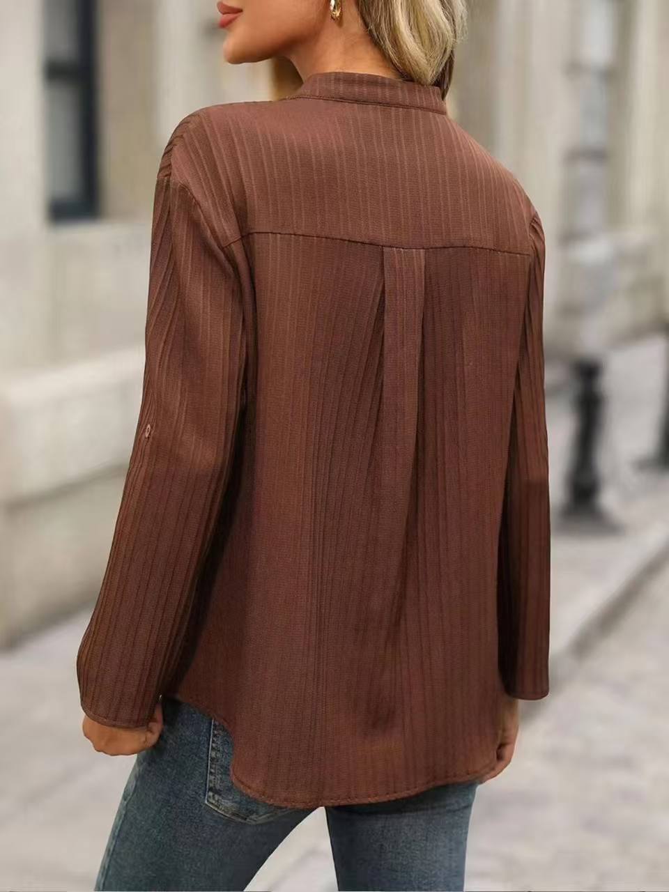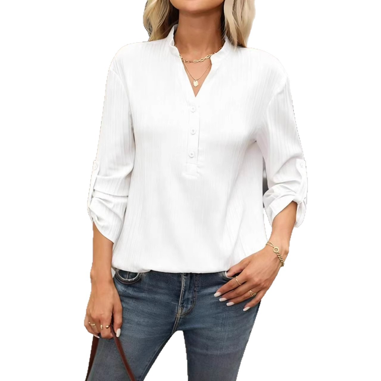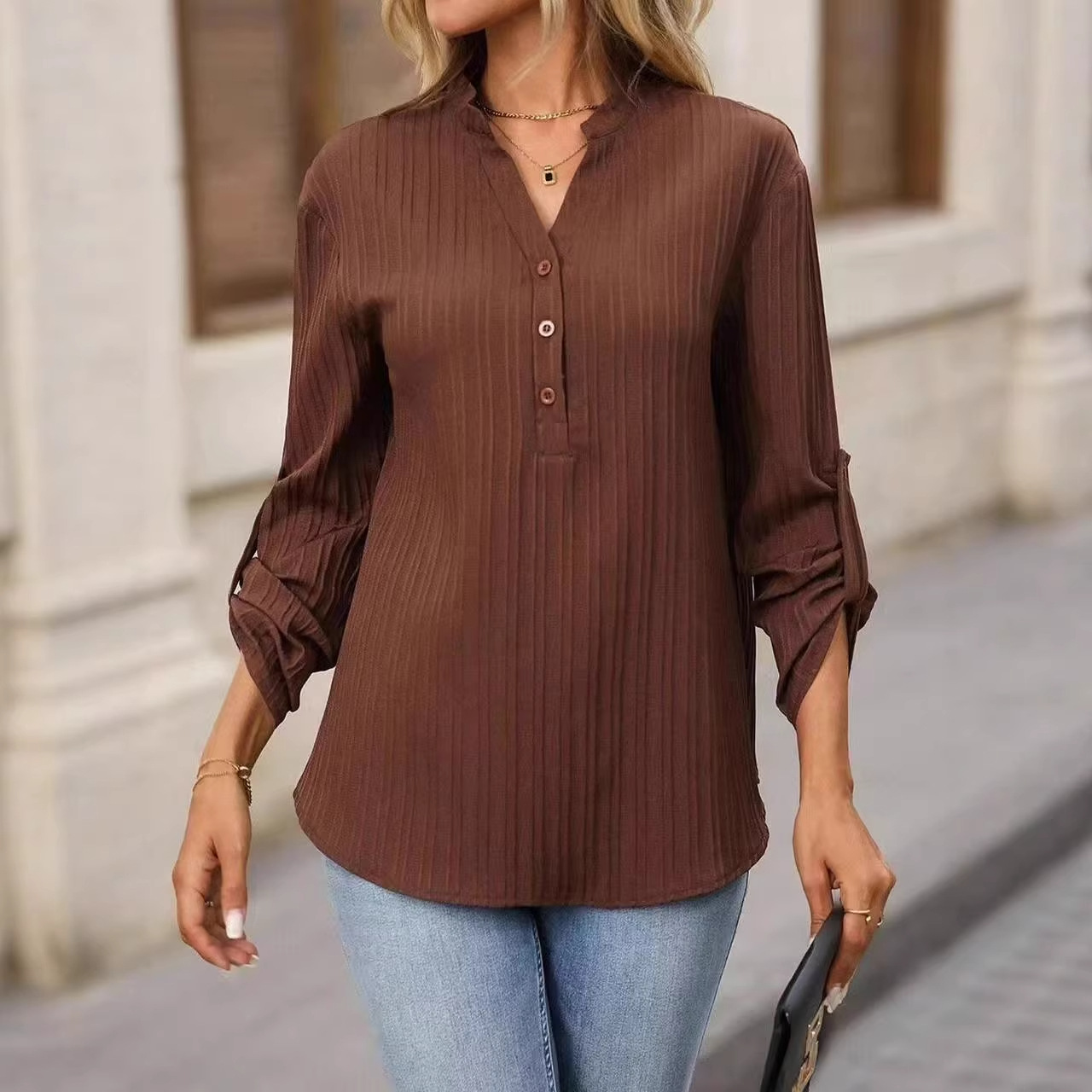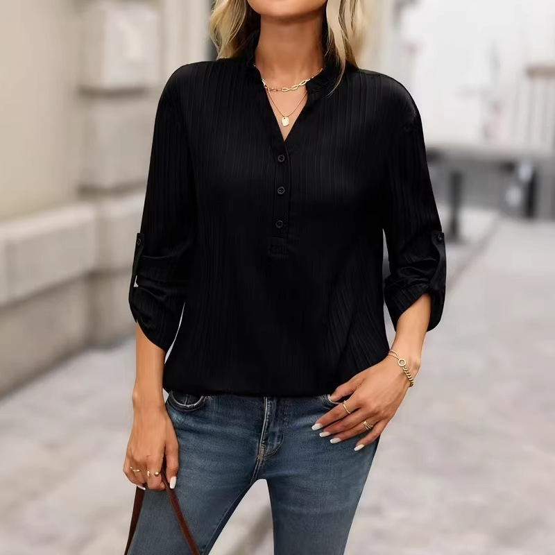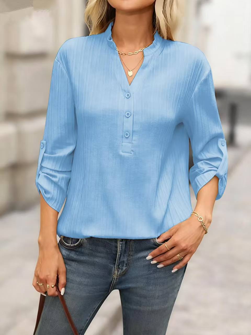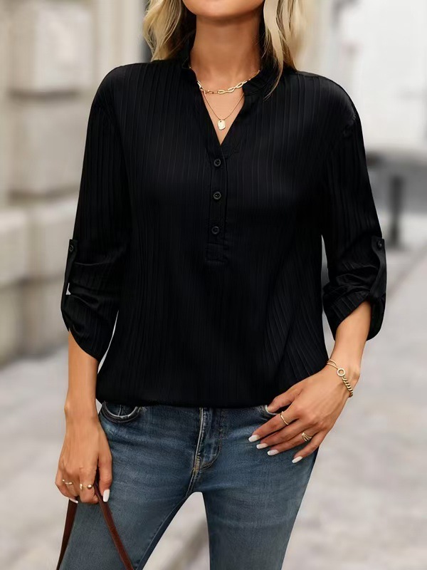 Fashion Elements: V-neck, Solid Color, Buttons