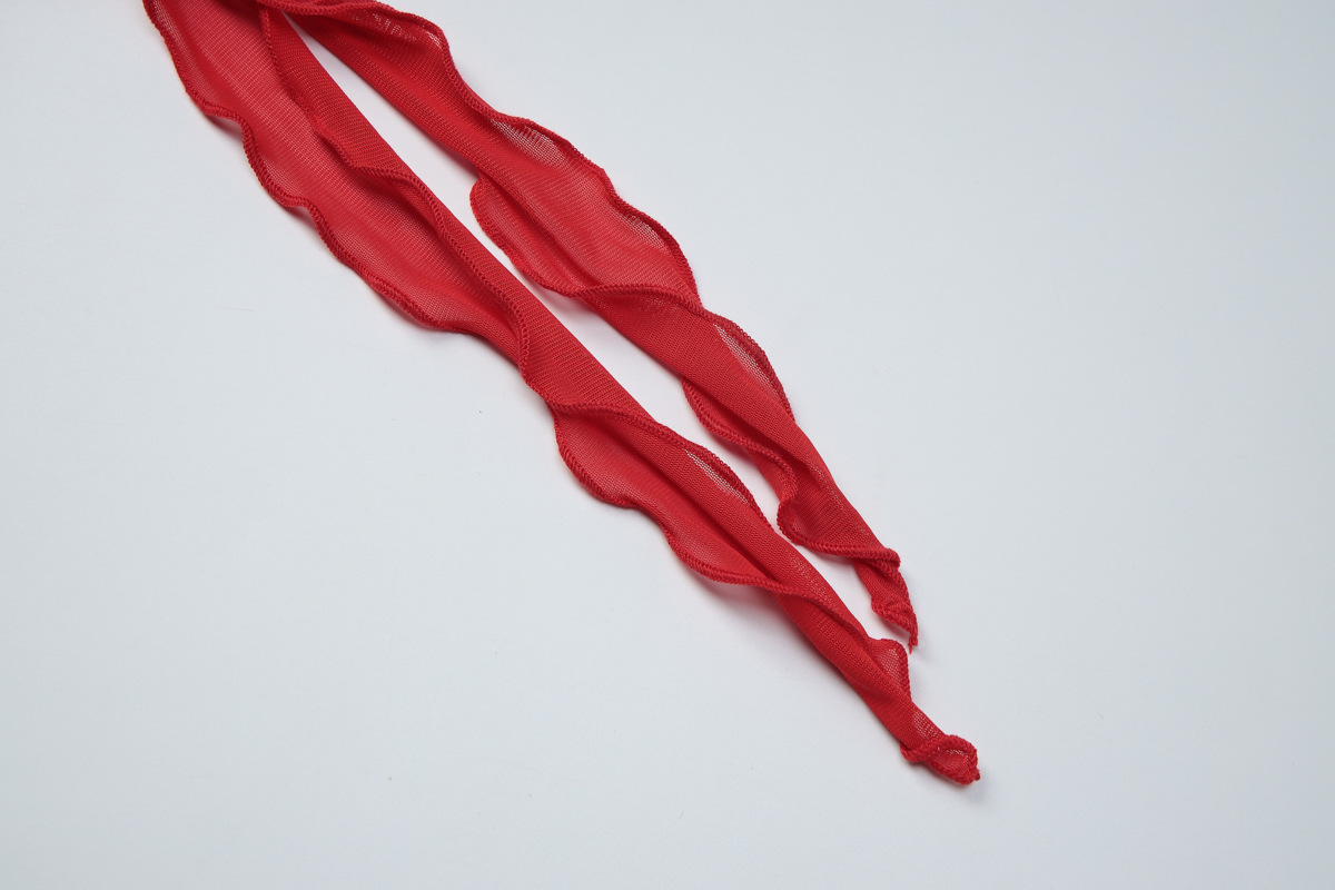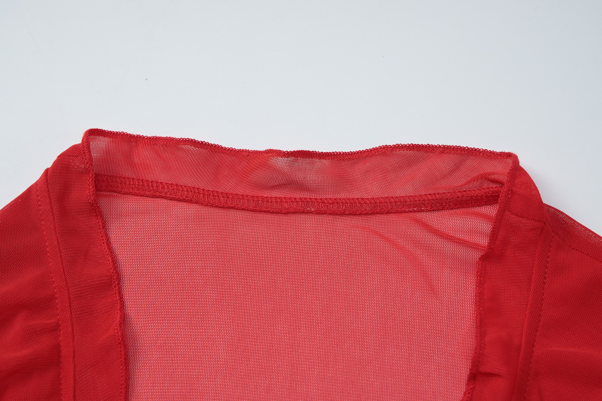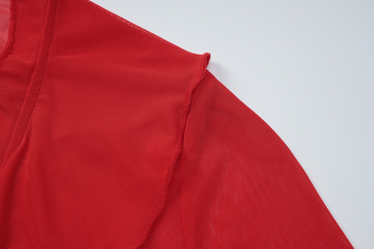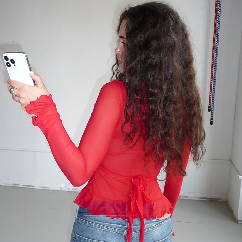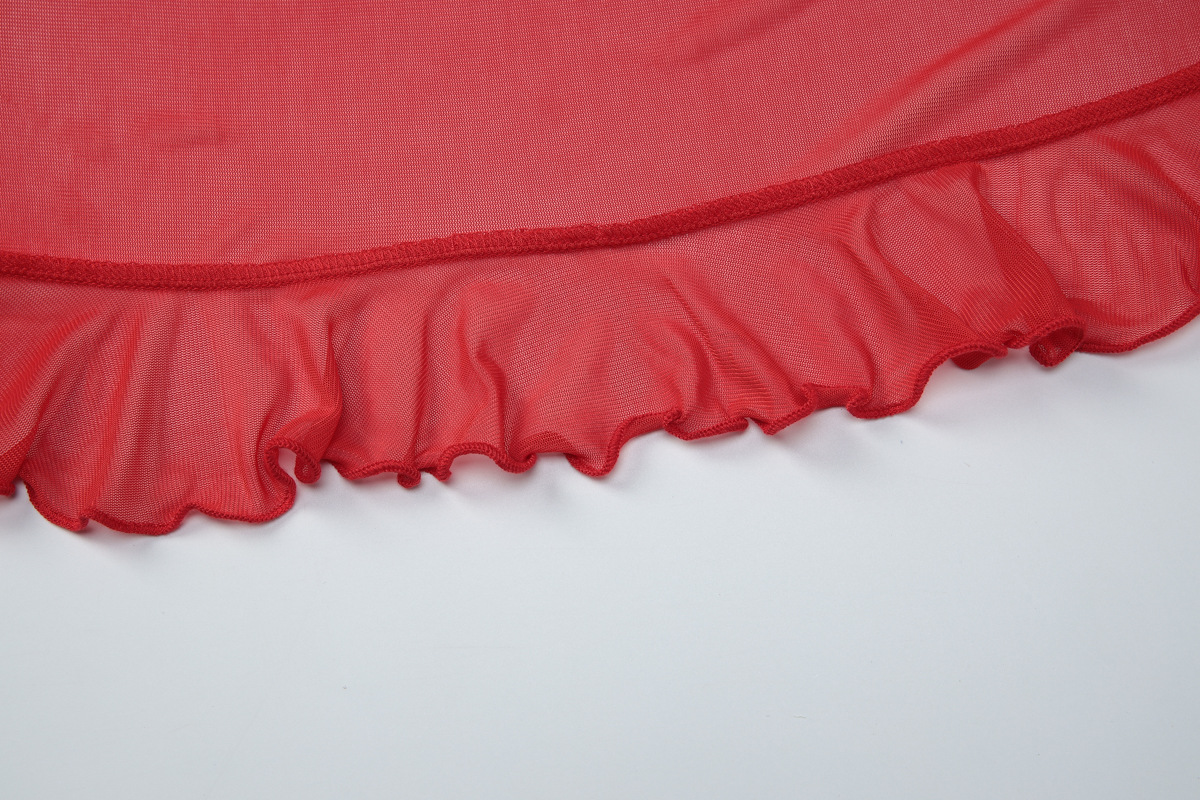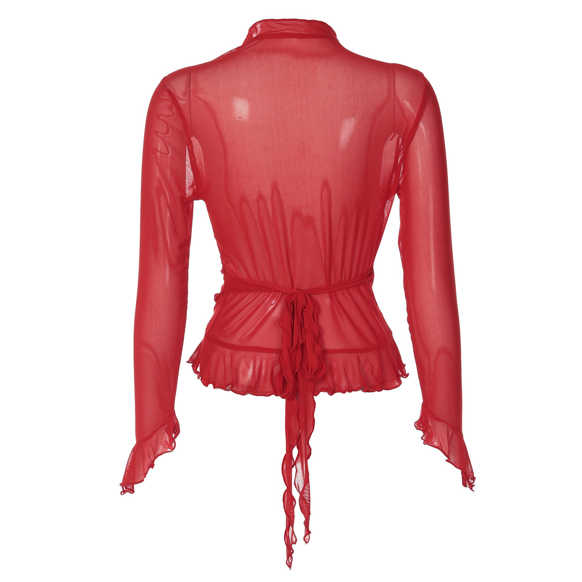 V-neck Ruffled Slim-fit Flared Long-sleeve Top