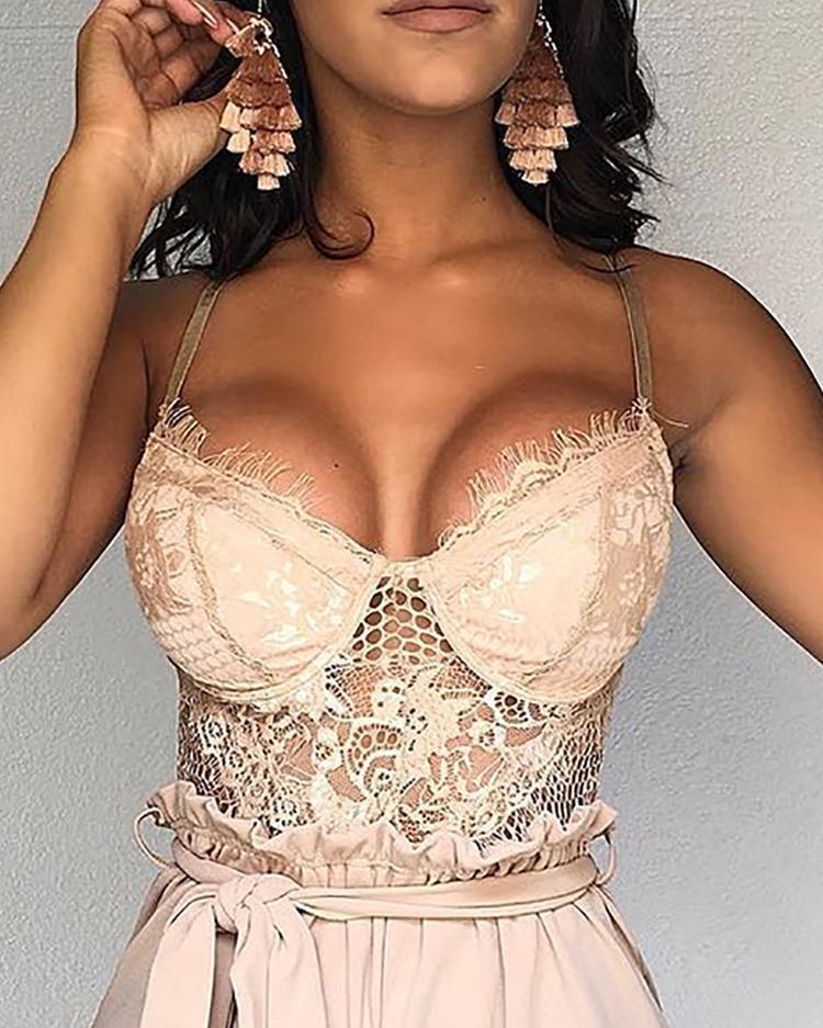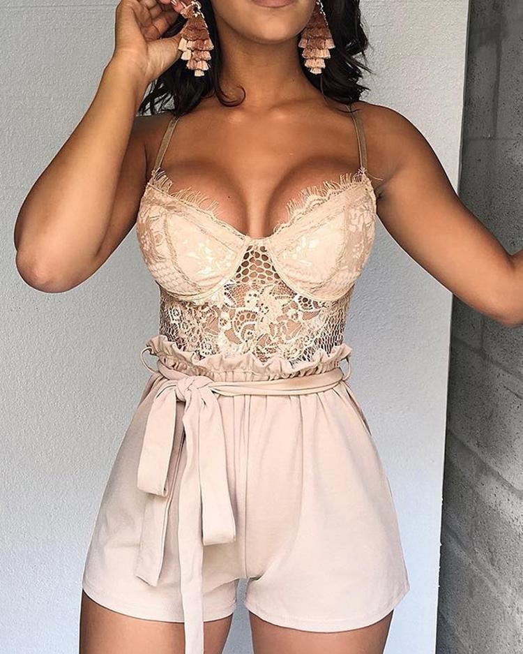 V-neck Sleeveless One-piece Shorts Containing Belt