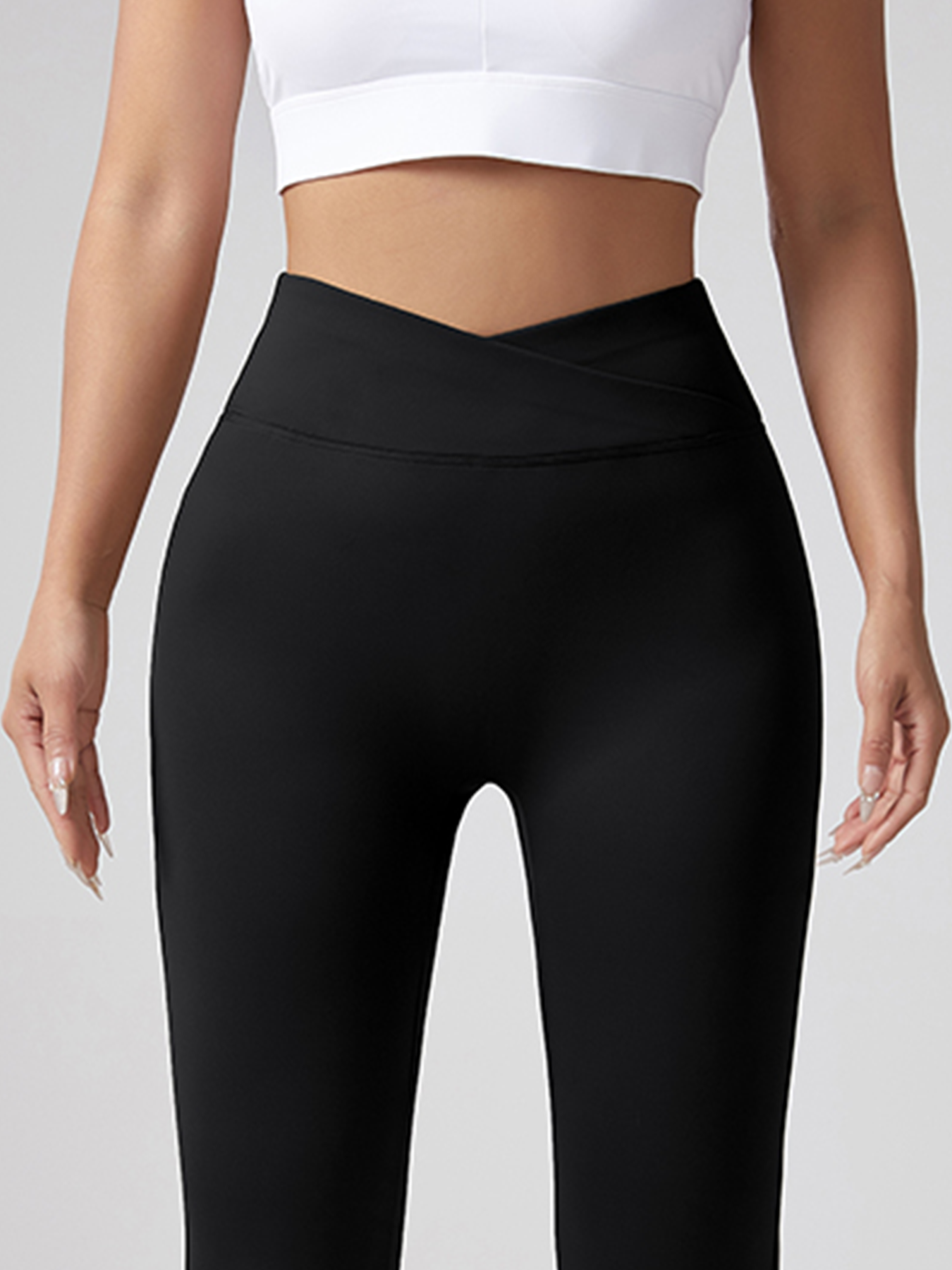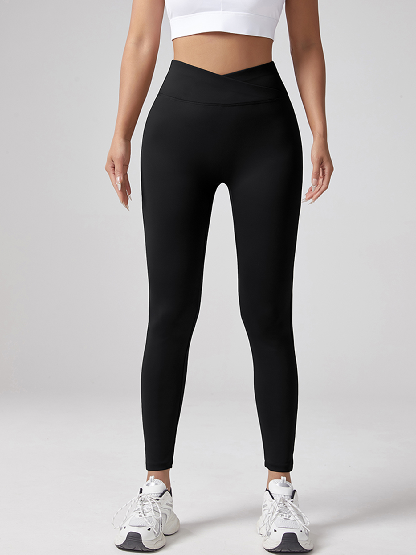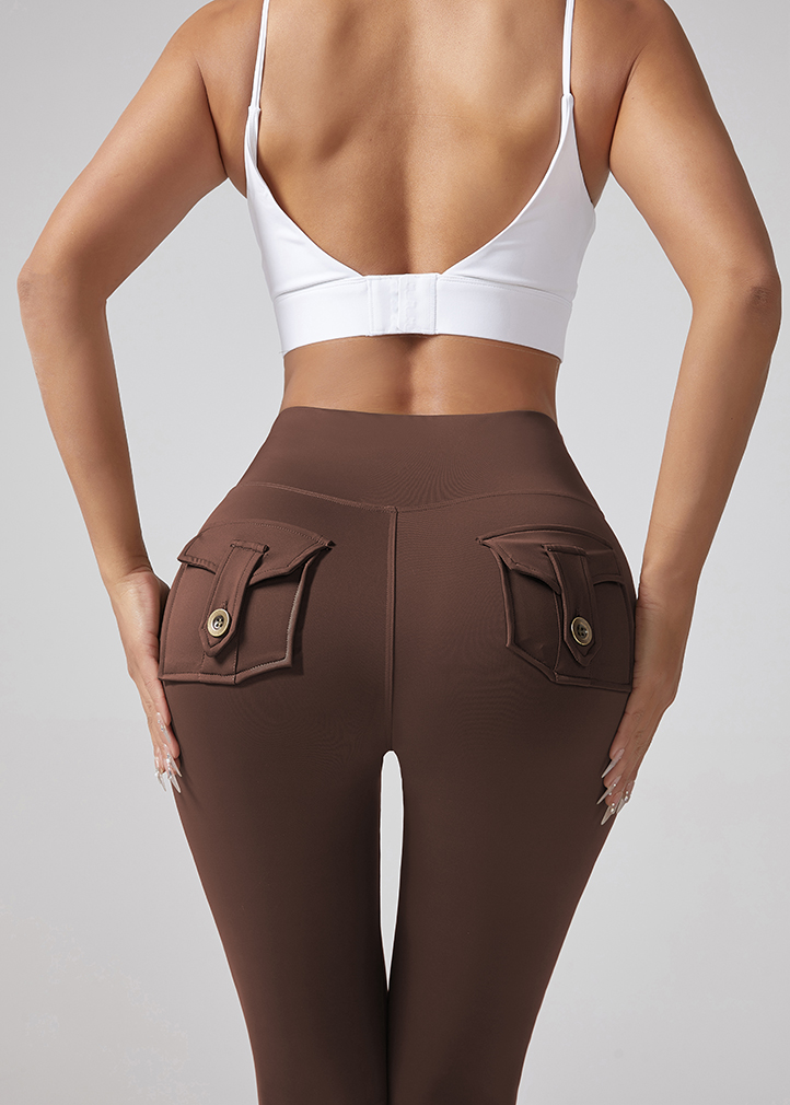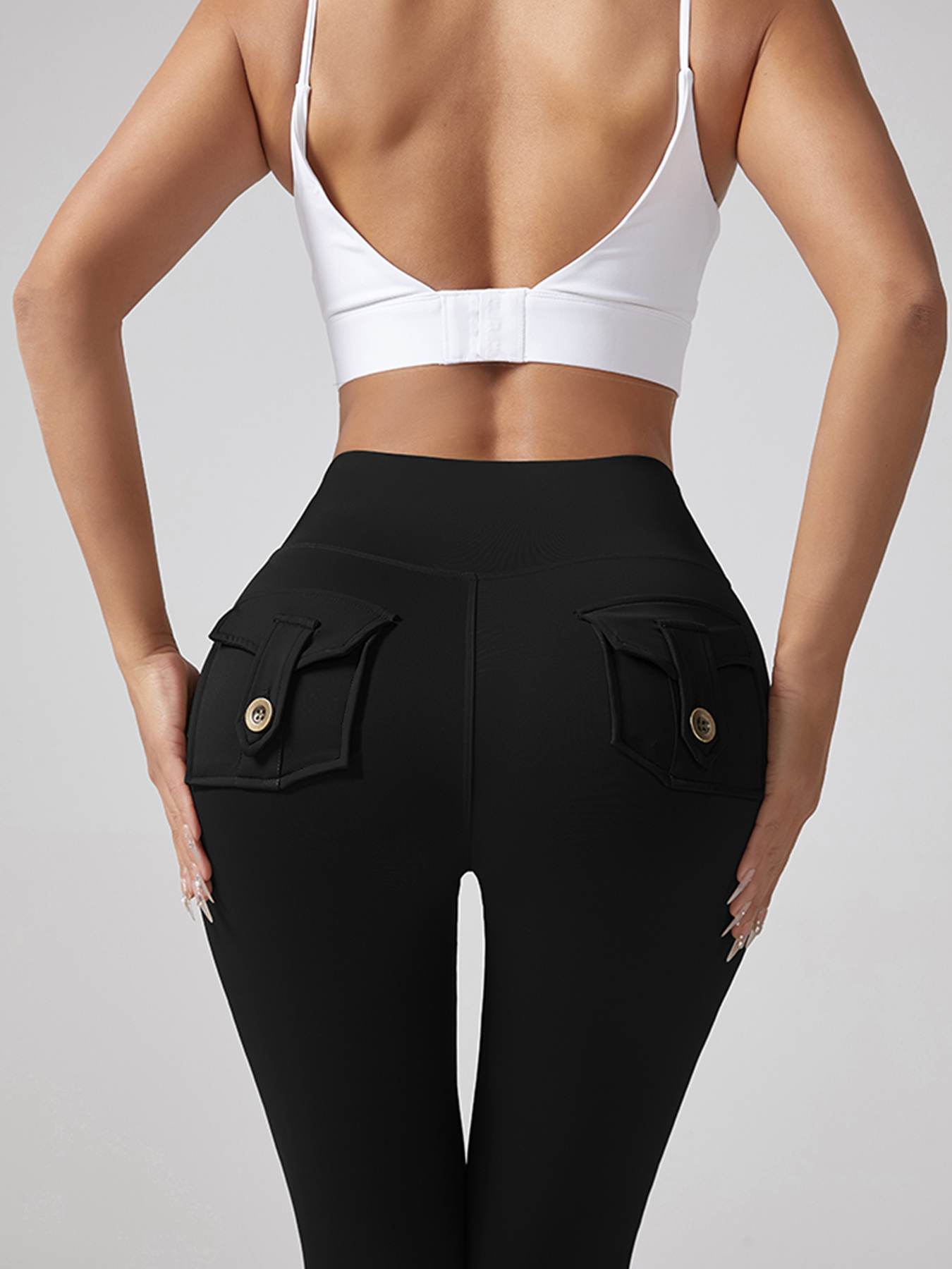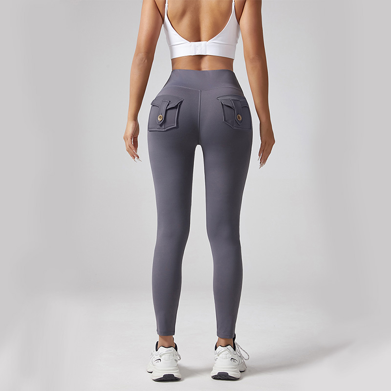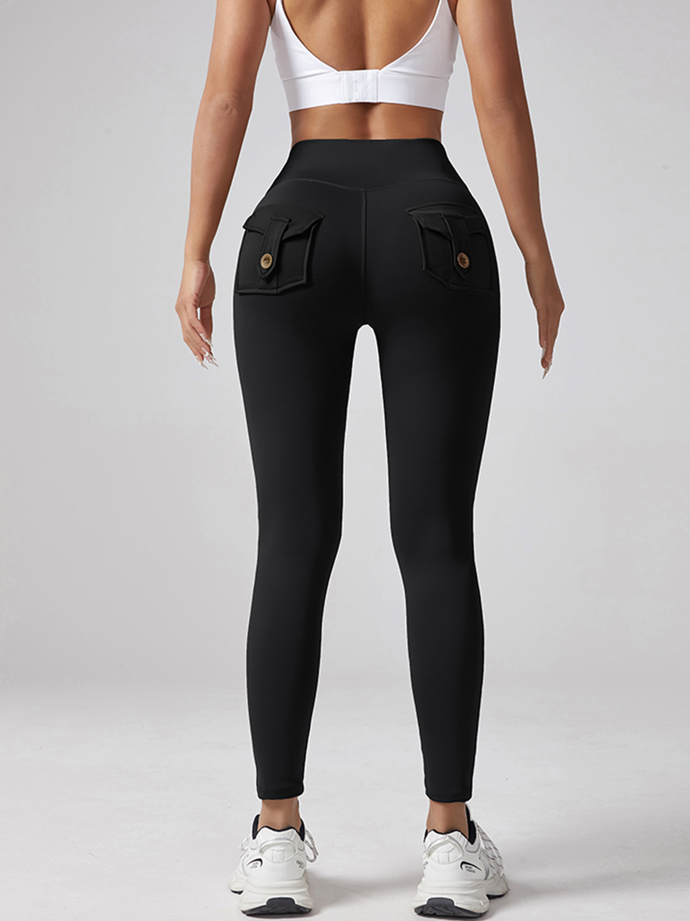 V-waist Yoga Elastic Tight Pants, Women's Peach Hip Lifting Running Speed Drying Yoga Pants, Workwear Pocket Button Pants