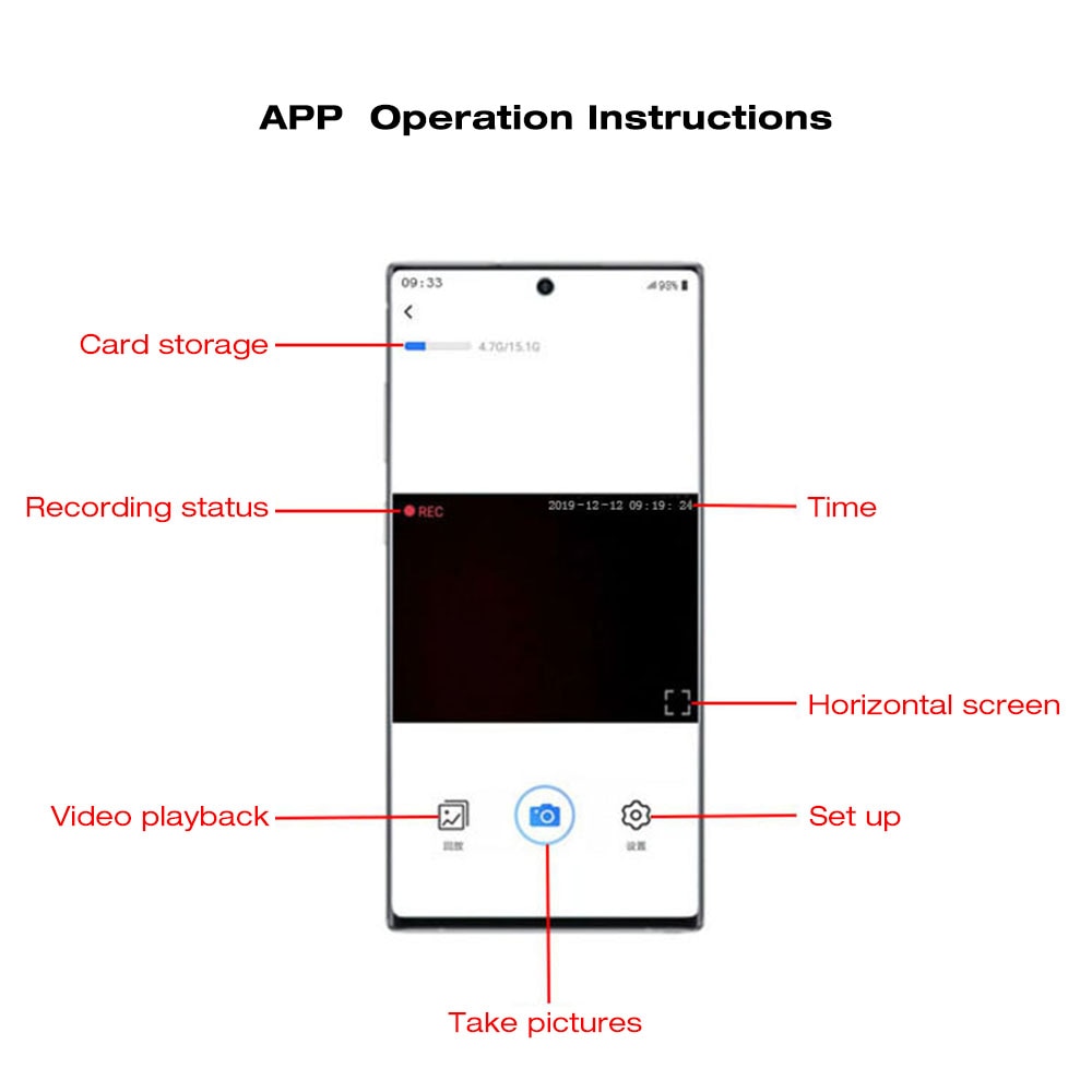 ♥ The video in the app is not as good as the video on the SD card. If you want to watch 1080P videos, you need to unplug the SD card and then insert it into your smart phone or use an SD card reader to watch your video on your computer.