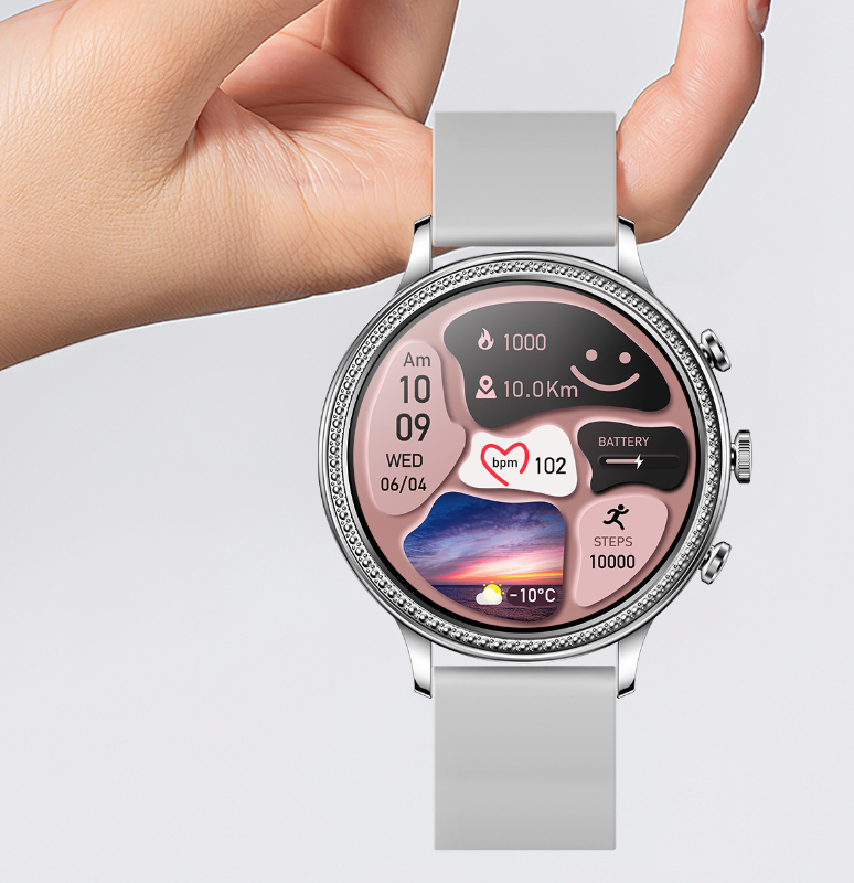 Functions: photo taking, step counting, heart rate monitoring, blood pressure measurement, social entertainment, Bluetooth calling, smart reminder, remote control selfie, sleep monitoring, blood oxygen detection