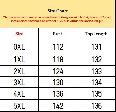 Sizes: 0XL, 1XL, 2XL, 3XL, 4XL, 5XL