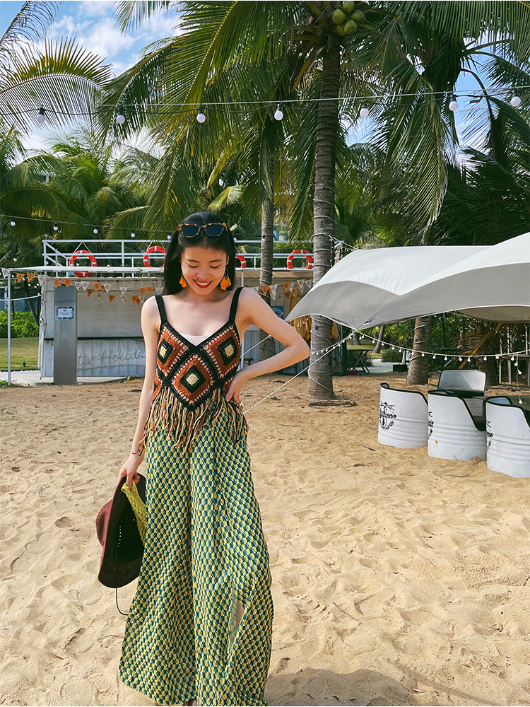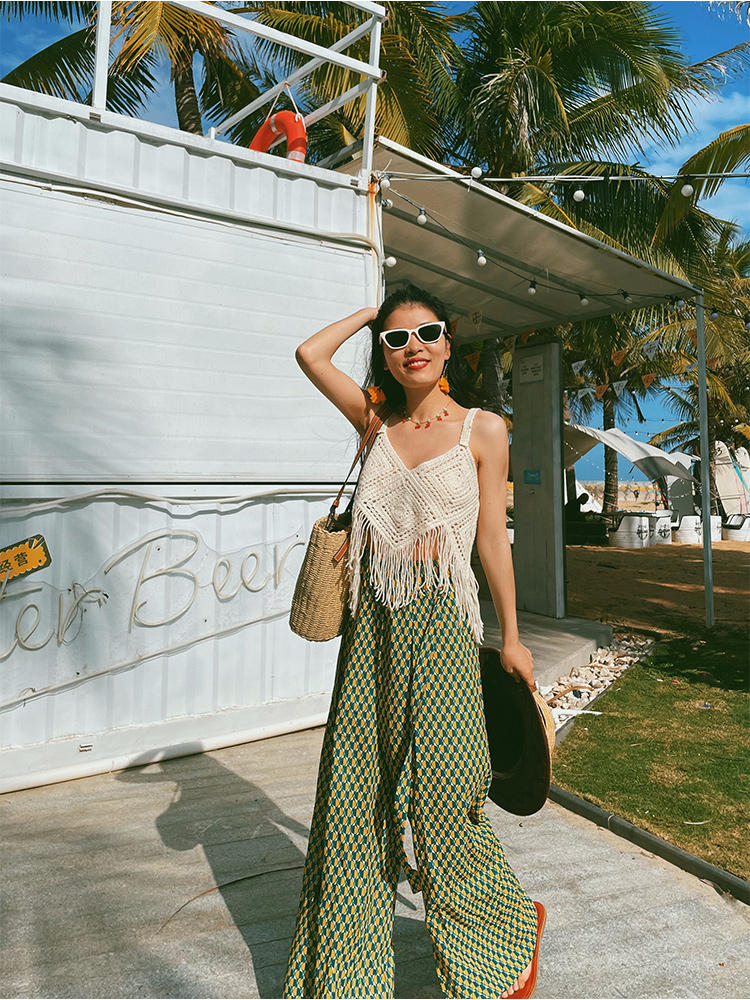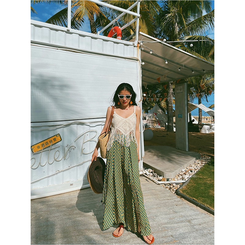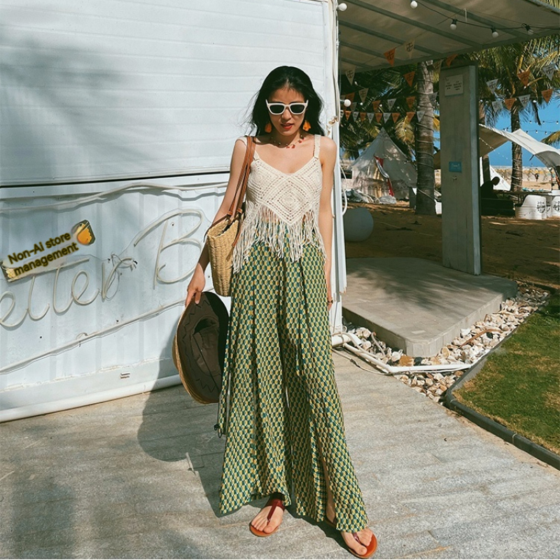 Vacation Style High Waist Slit Chiffon Wide-leg Pants