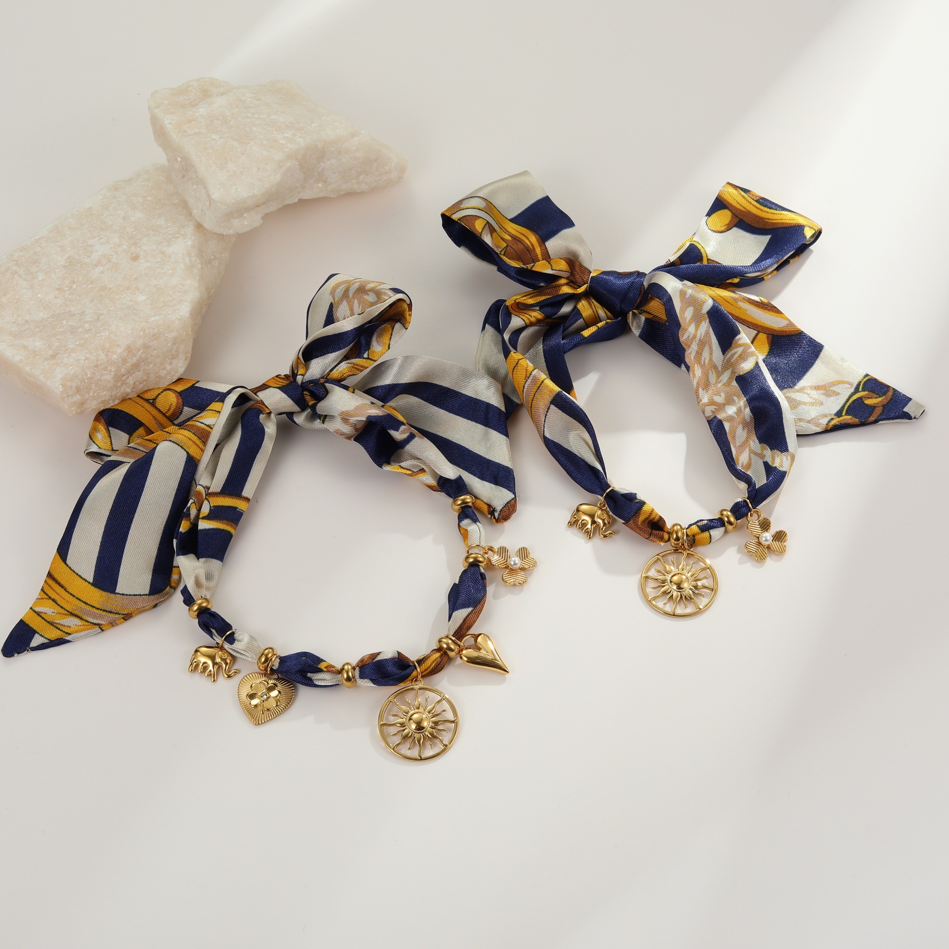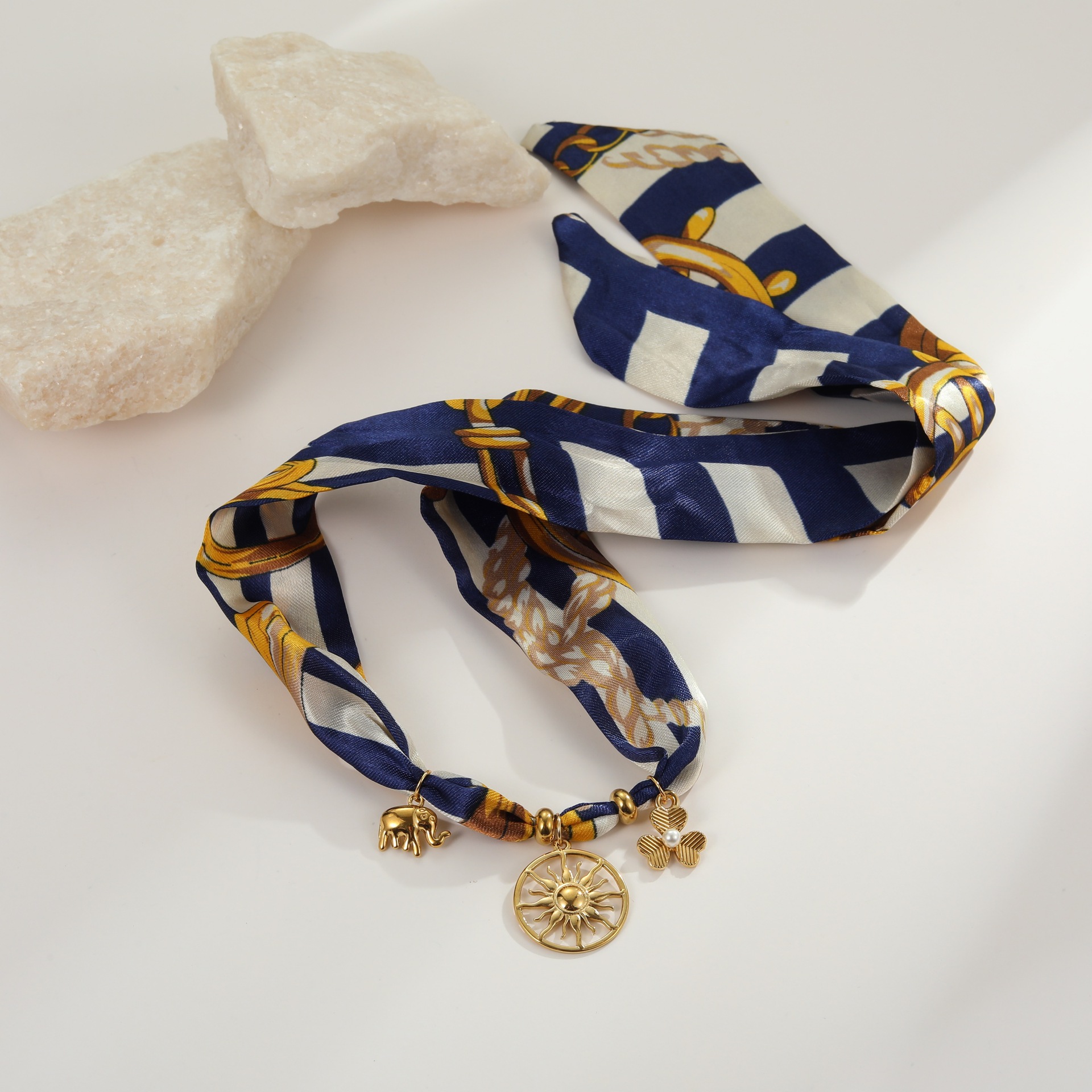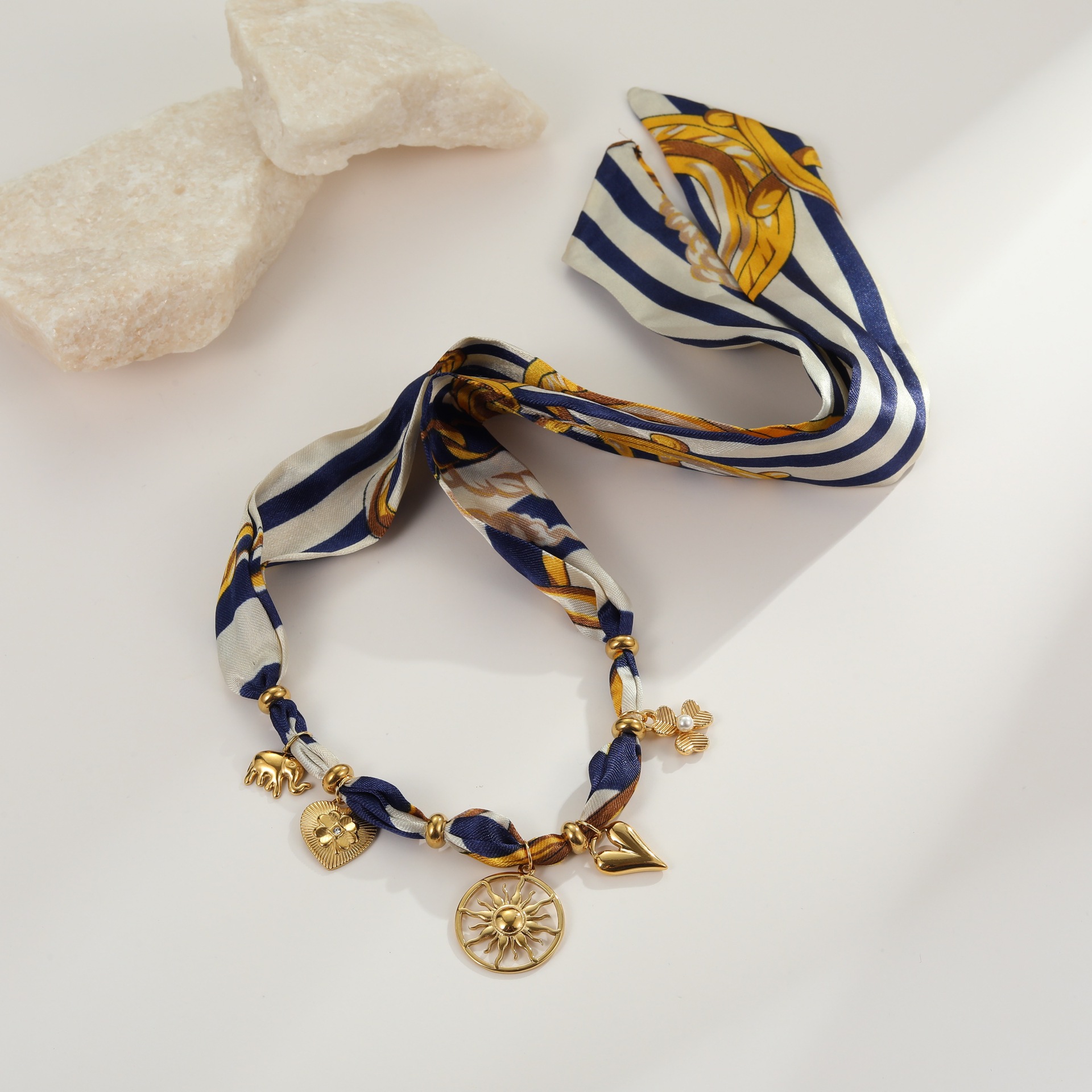Vacation Style Lace-up Silk Scarf Titanium Steel Necklace Does Not Fade Elegant