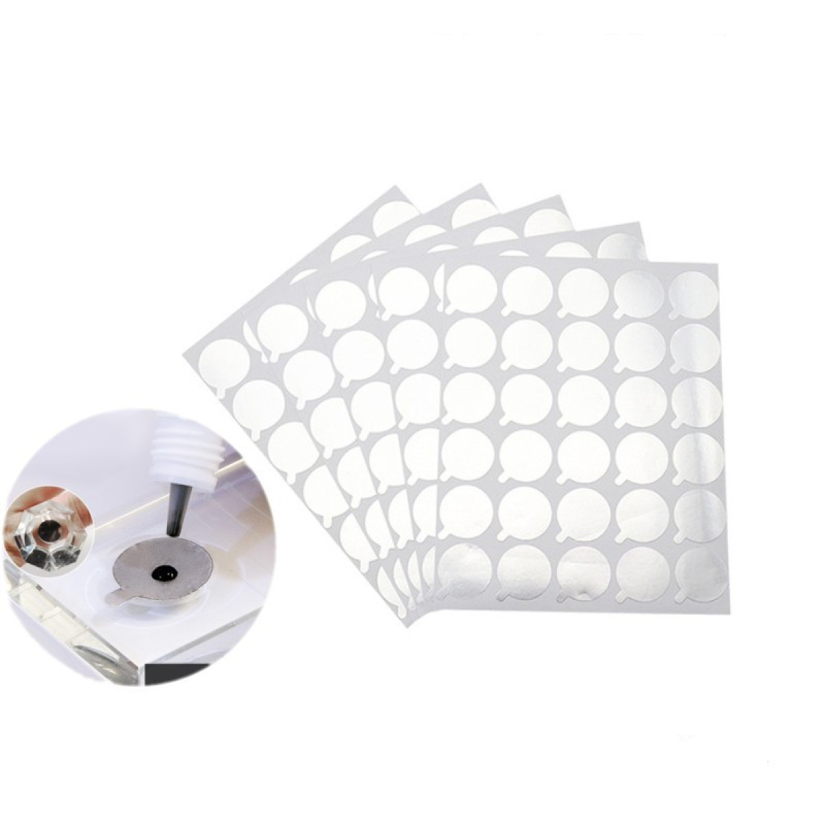 Specification: 1 sheet 30 stickers, 1 pack of 10 sheetsDiameter: 2. 0cmProduct name: Aluminum glue stickerSize: single sheet 12X15CM