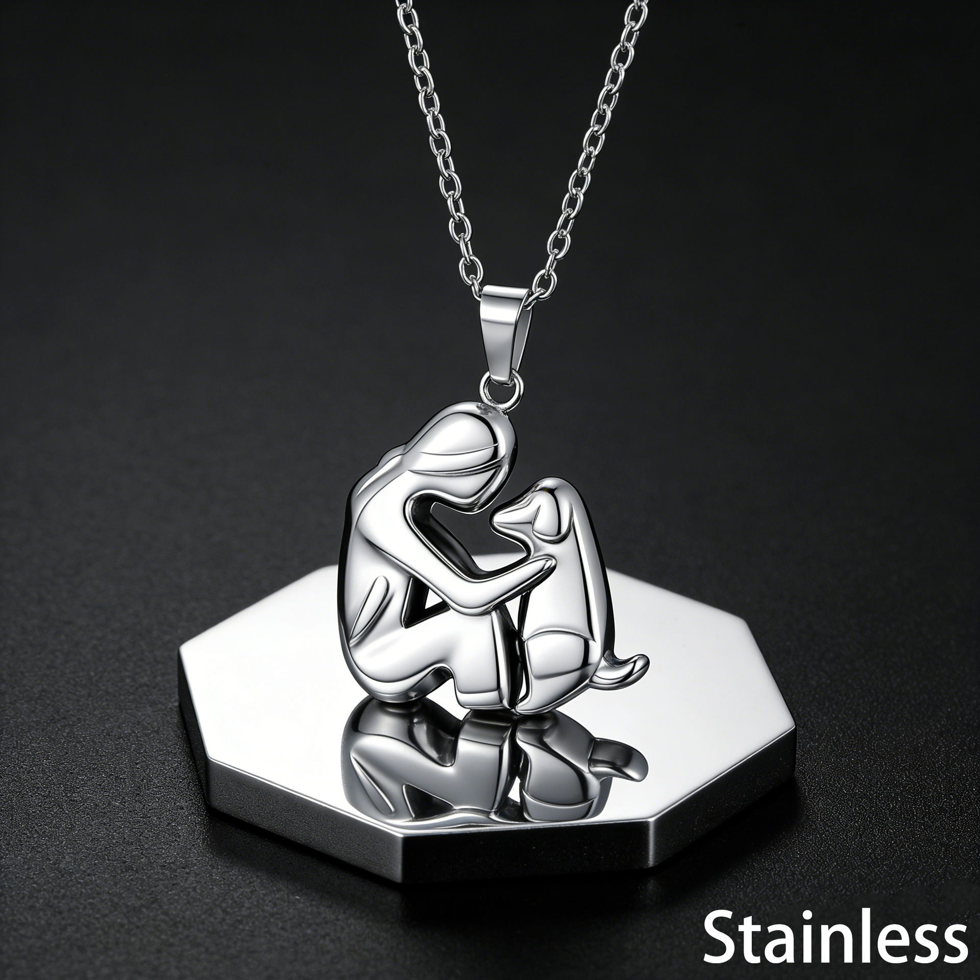 Color: Gold interwoven girl and dog necklace (40cm–50cm), sterling silver girl and dog necklace (40cm–50cm), gold interwoven girl and dog earrings (outer diameter 3.6cm), girl and black dog earrings (outer diameter 3.6cm), sterling silver girl and dog earrings (outer diameter 3.6cm)