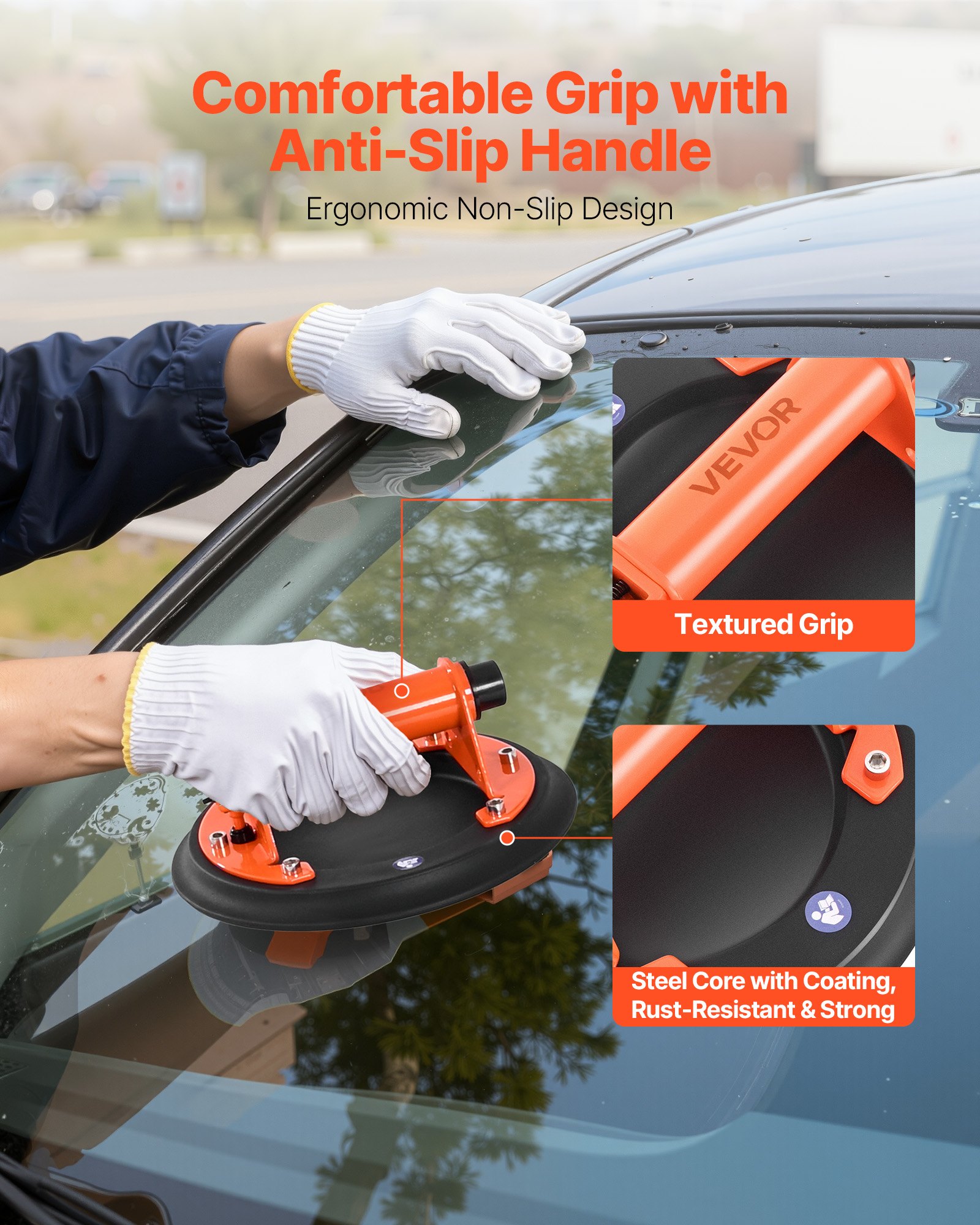 Ergonomic Steel Handle: The ergonomic cold-rolled steel handle of the tile suction cup gives a steady, non-slip hold. Your hands stay comfy on long tasks, and your lifts feel controlled from start to finish