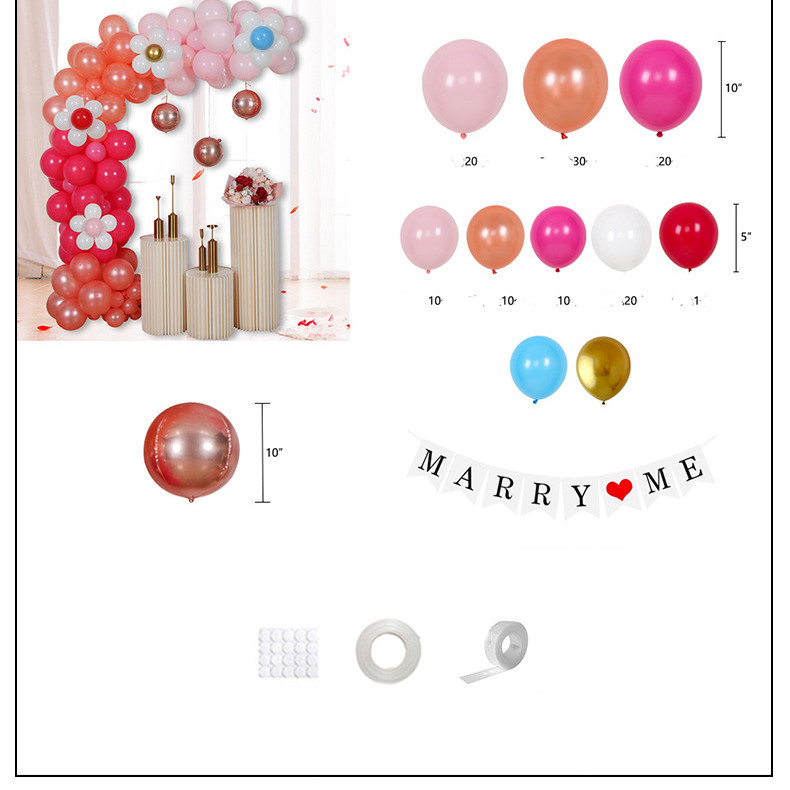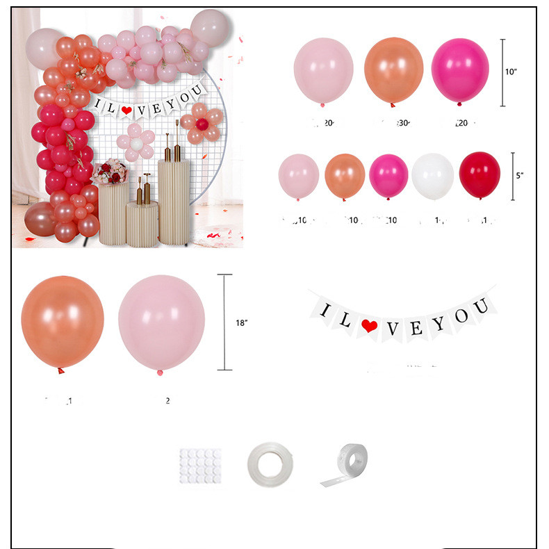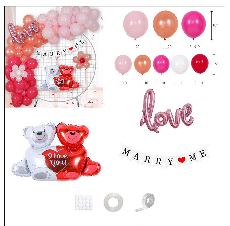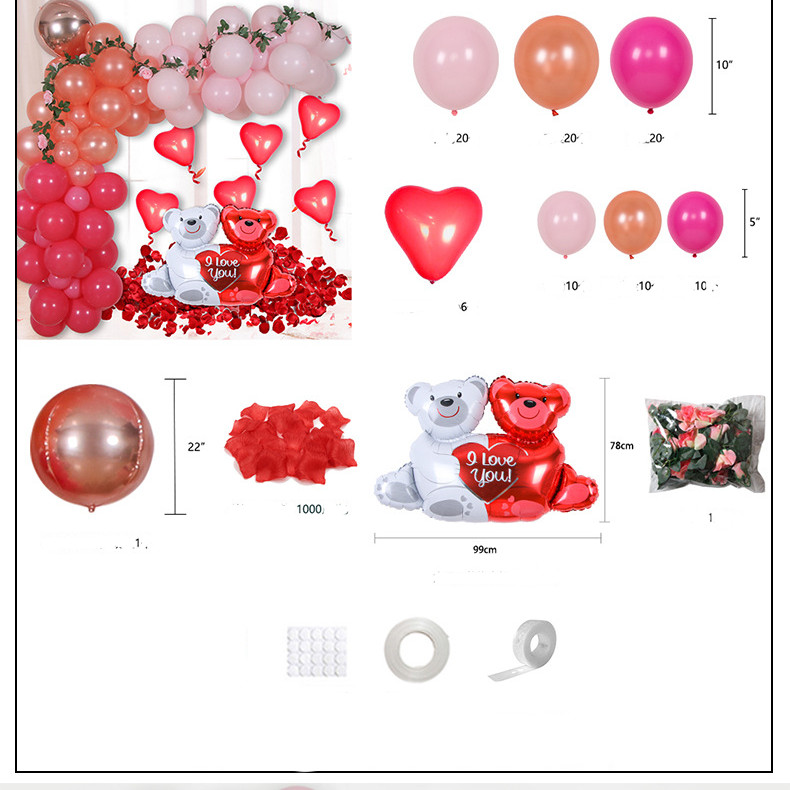 Size: Valentine's Day Hug Bear Balloon Chain, Valentine's Day Flower Balloon Chain, Valentine's Day LOVE Balloon Chain, Valentine's Day Rose Petal Set