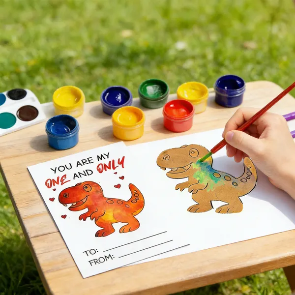 Package Includes: This Valentine's Day gift for kids includes 28 pcs Valentines dinosaur exchange cards, dinosaur wood signs (6 designs), 3-colored watercolor paints, painting brushes (color random), and 30 pcs clear bags.Well-Proportioned: The size of Valentine's dinosaur card is 3.5" x 4.73", and the size of dinosaur wood sign is about 3.5" x 3.95", which is perfectly sized for kids.Cultivate Creativity: Painting is a creative outlet, and this Valentine's Day gift can help kids express themselves and explore their imagination. It can also help build confidence and hands-on ability.Child Friendly: The Valentine's Day gifts include safe and child-friendly painting tools, so kids can enjoy the fun and create their masterpieces. Make some cherished memories together this Valentine's Day!Perfect Gifts: This charming Valentine's Day gift is the ideal addition to any classroom gift exchanges, school parties, kids' birthday bashes, or Valentine’s events. With adorable designs and delightful surprises, These Valentine's Day gifts will surely capture the hearts of all the little ones.Dedicated Customer Support: Your satisfaction is paramount. If our products fall short of your expectations, don't hesitate to reach out. Our team is committed to ensuring your concerns are addressed to your contentment.
