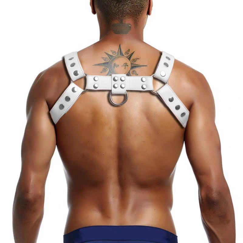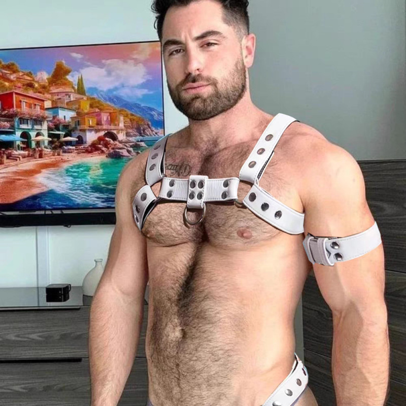 Product information:Color: White, Pants, Arm BandGender: Men'sAge Group: AdultMaterial: Leather, Rivets, Metal Buckle