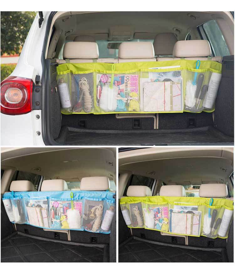 Material: Oxford clothUse position: seat backStyle: Storage net bagColor: black, yellow, green