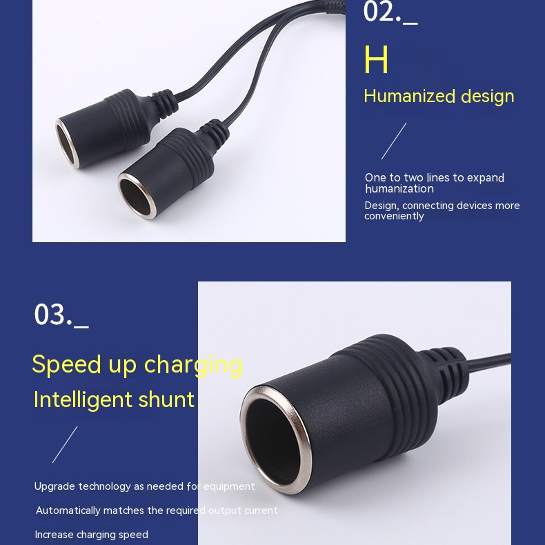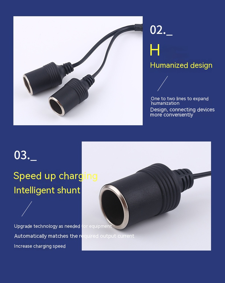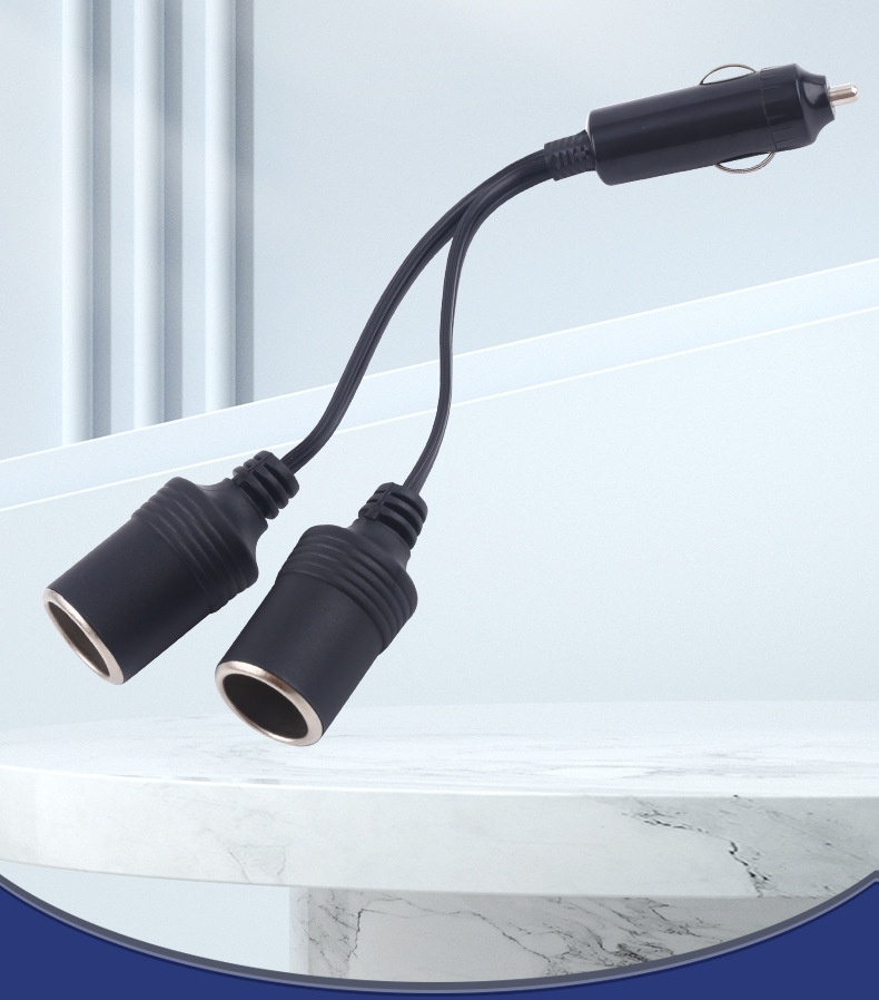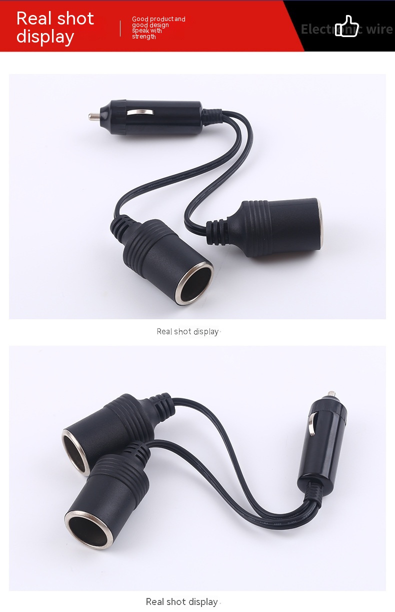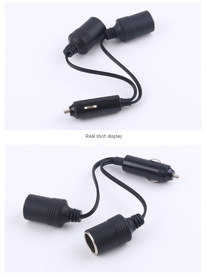 Color: Black 006 car charger divided into two cigarette lighter USB 25cm 18AWG