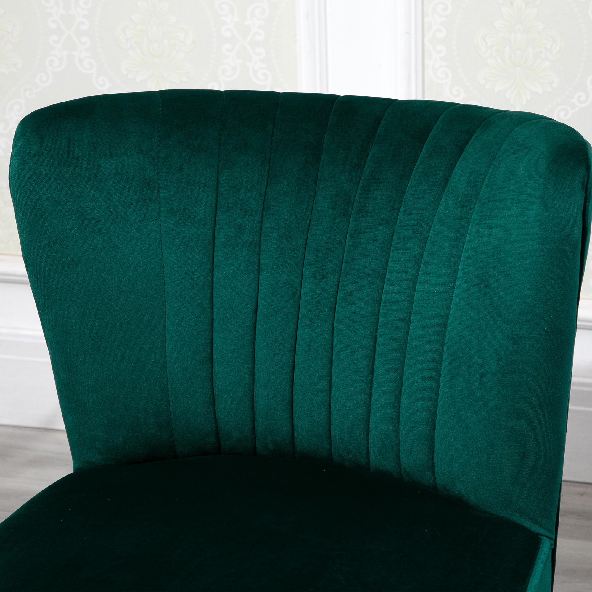 Bring a pop of luxe colour into your home with this accent chair from . Crafted into a wide and armless tub design, with thick padding for optimum comfort whilst seated, this bedroom chair is wrapped in velvet-feel upholstery which is smooth and easy to wipe clean from light stains. The structure is made from wood for strength, with four rubber wood feet in a natural finish for extra strength and balance. It's a beautiful and bold addition you'll love having stand in your home.