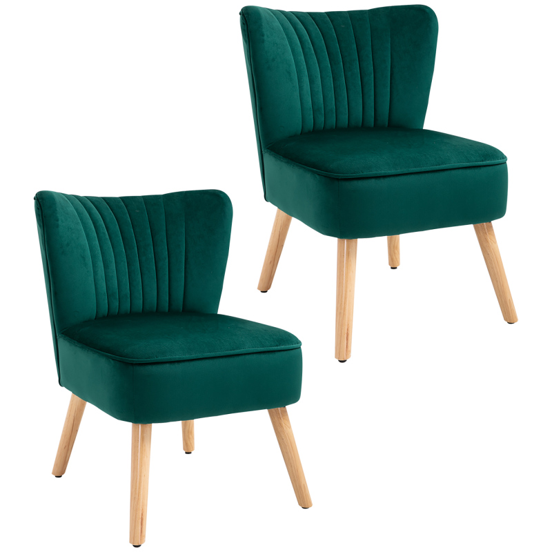 Velvet Accent Chair Occasional Tub Seat Padding Curved Back With Wood Frame Legs Home Furniture Set Of 2 Green