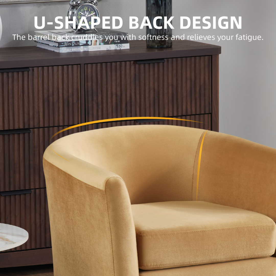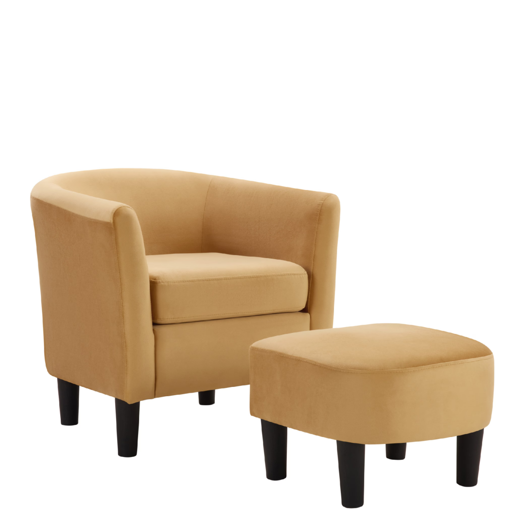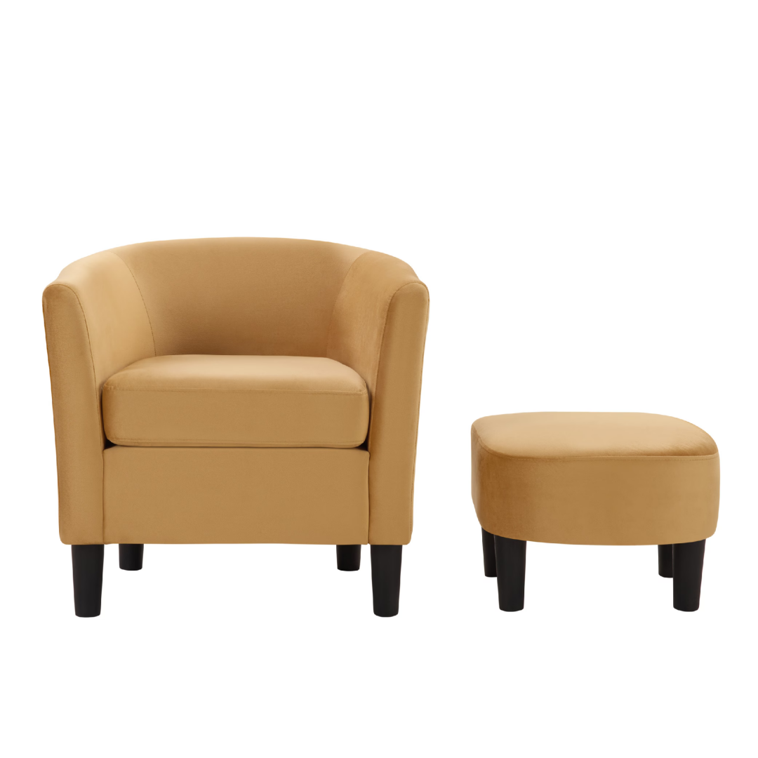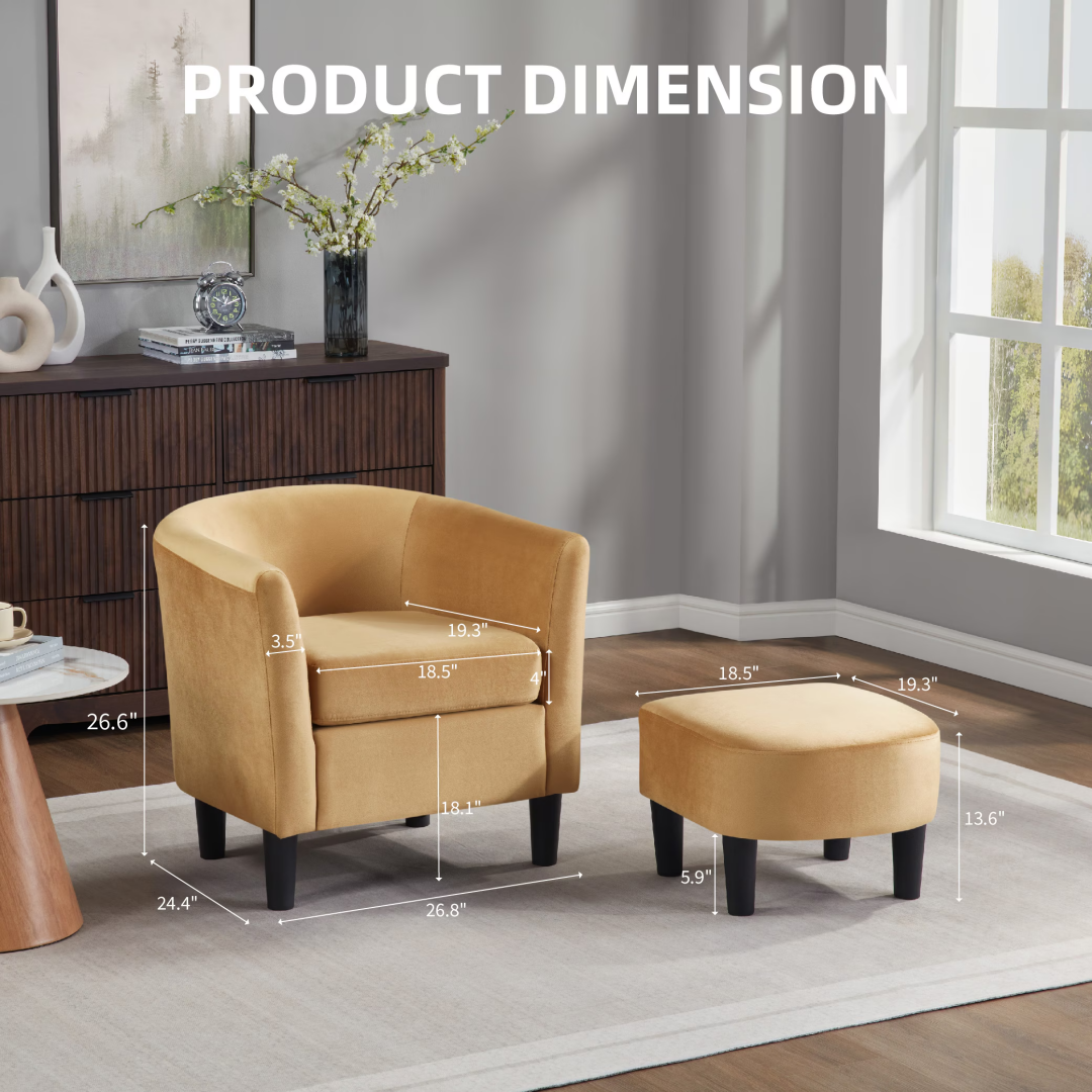 Product Name: Velvet Accent Chair with Ottoman, Modern Barrel Chair Armchair for Living Room, Bedroom, Yellow