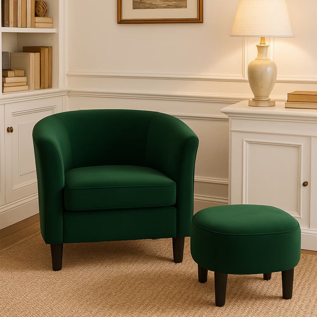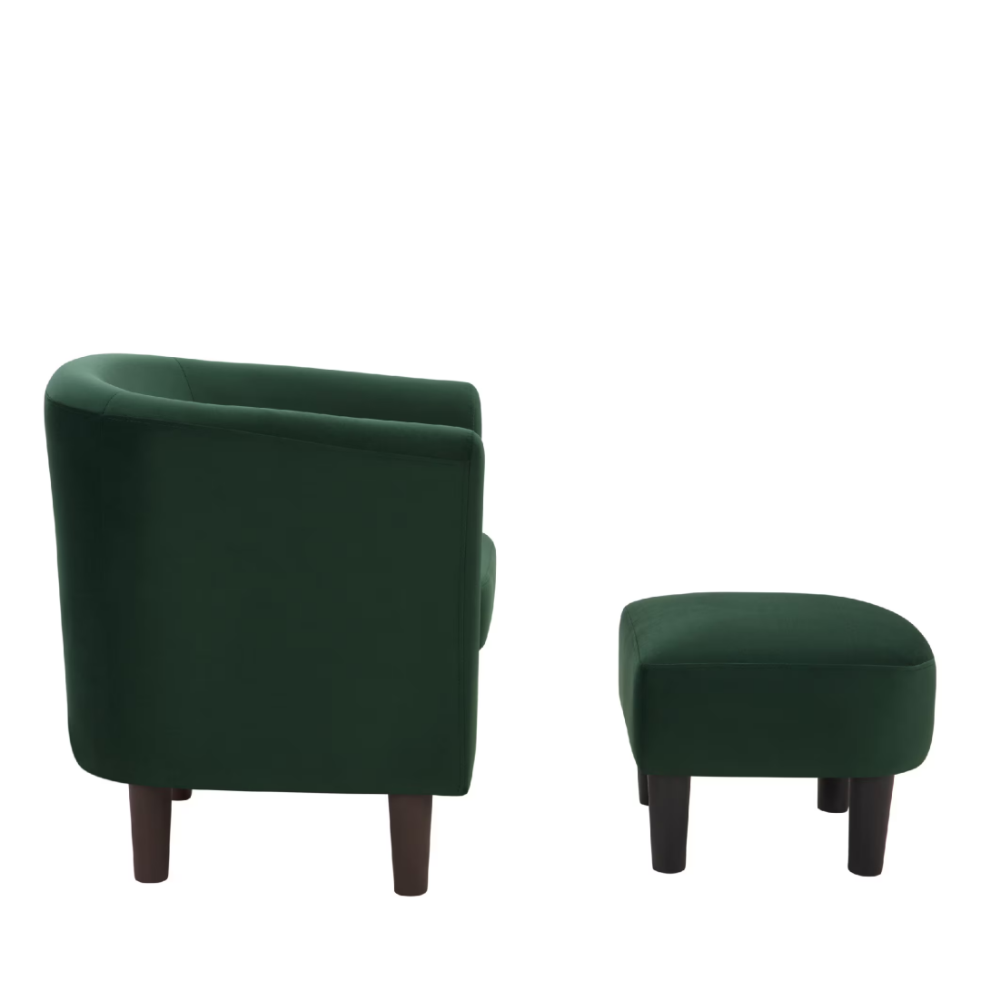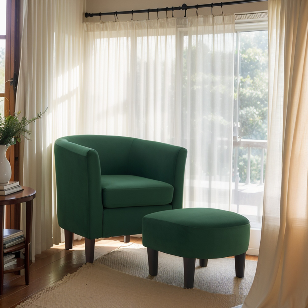 Product Name: Velvet Accent Chair with Ottoman, Modern Barrel Chair Armchair for Living Room, Green