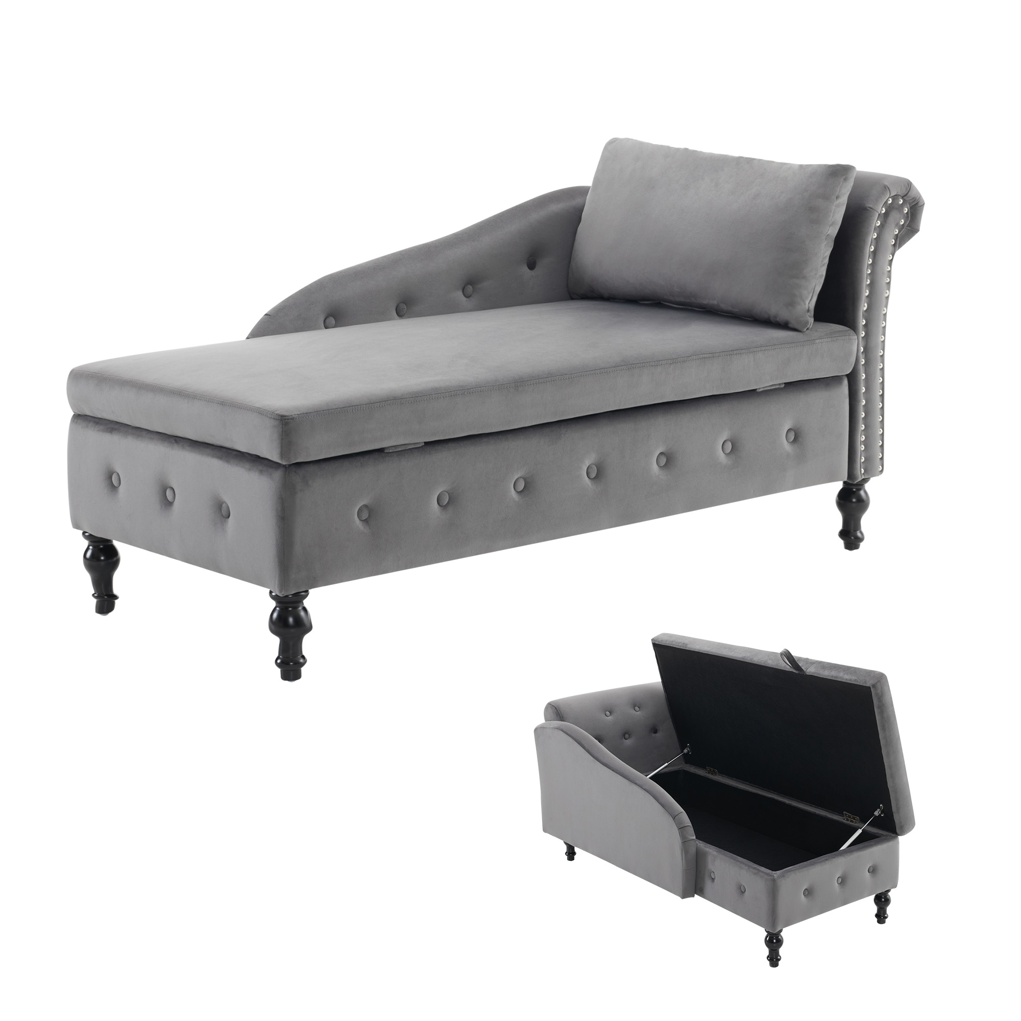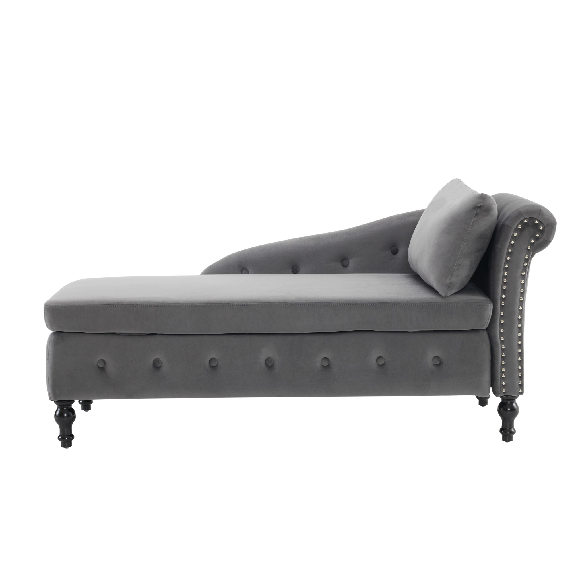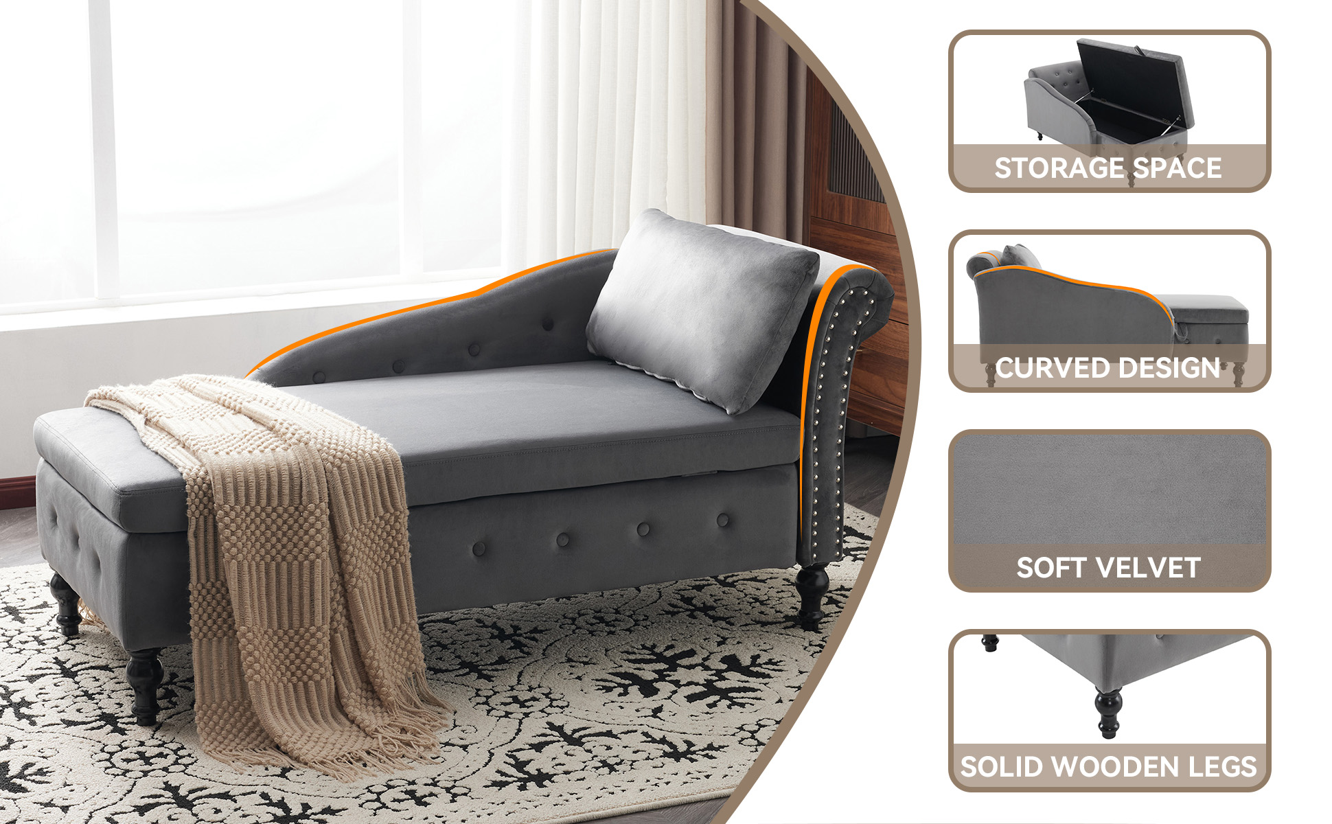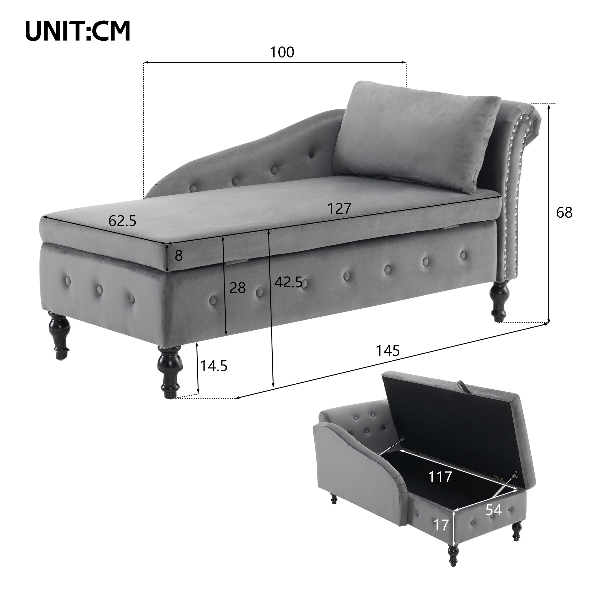 Product Name:Velvet Chaise Lounge Sofa with Storage, Upholstered Chaise lounge Couch with Pillow for Living Room, Modern Nailhead-Trim & Button-tufted Lounge Chair, Bedroom and Office, Right Armrest