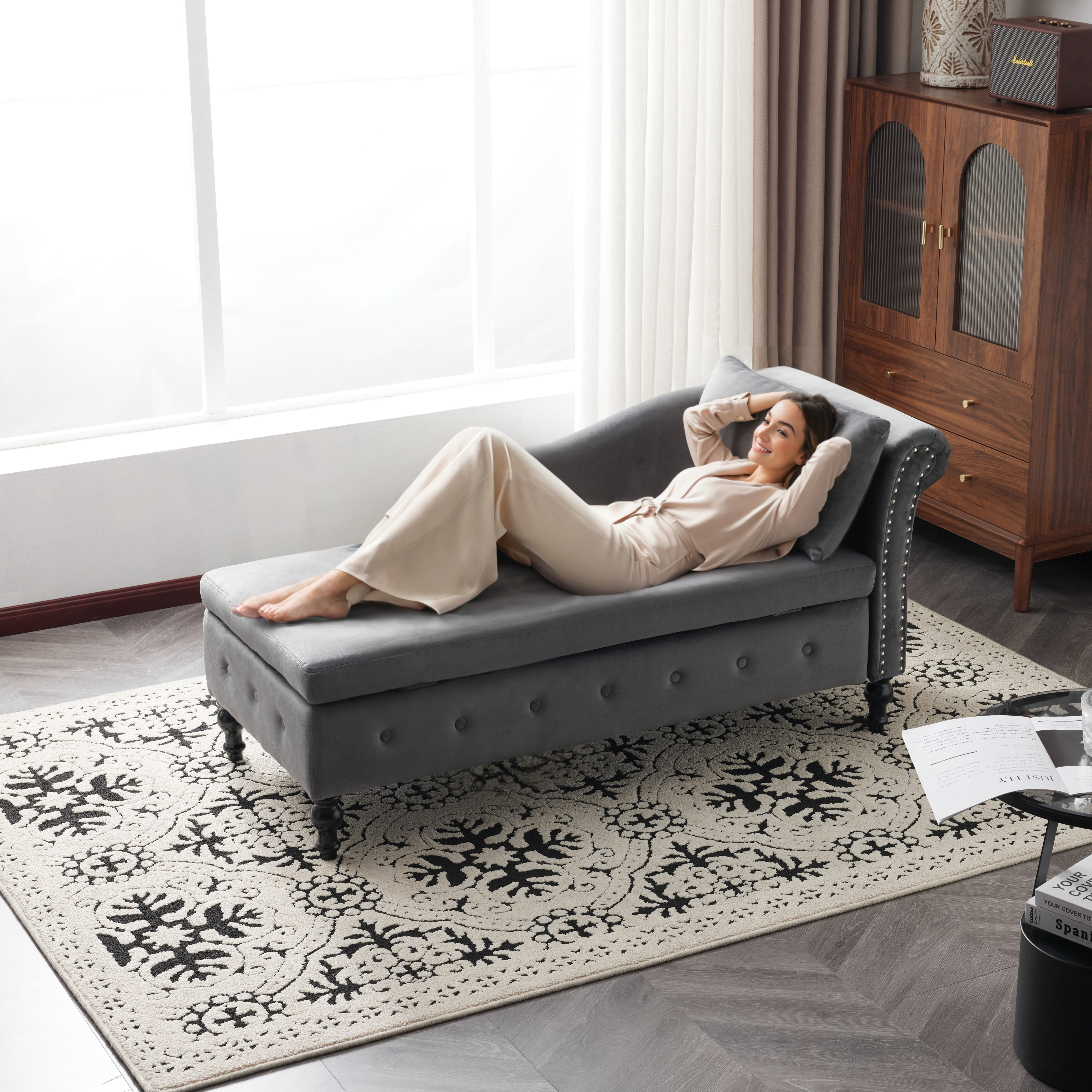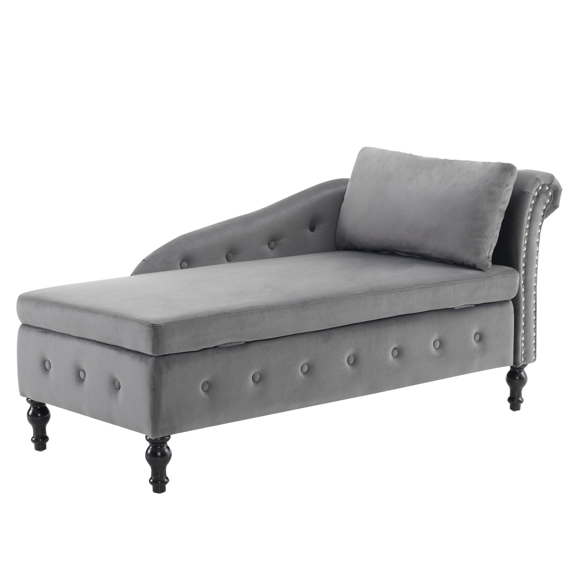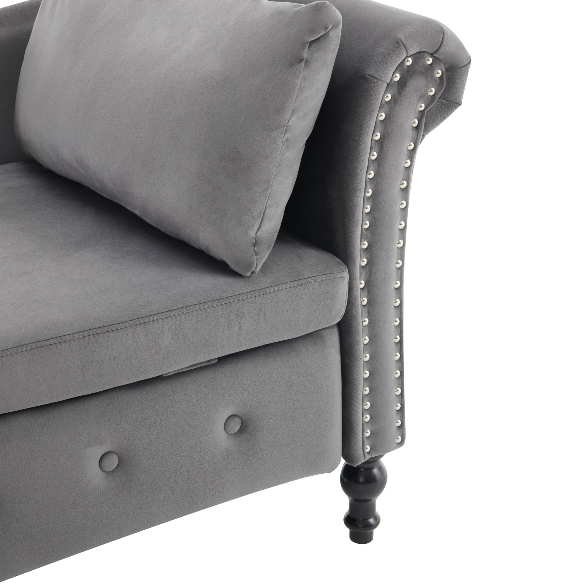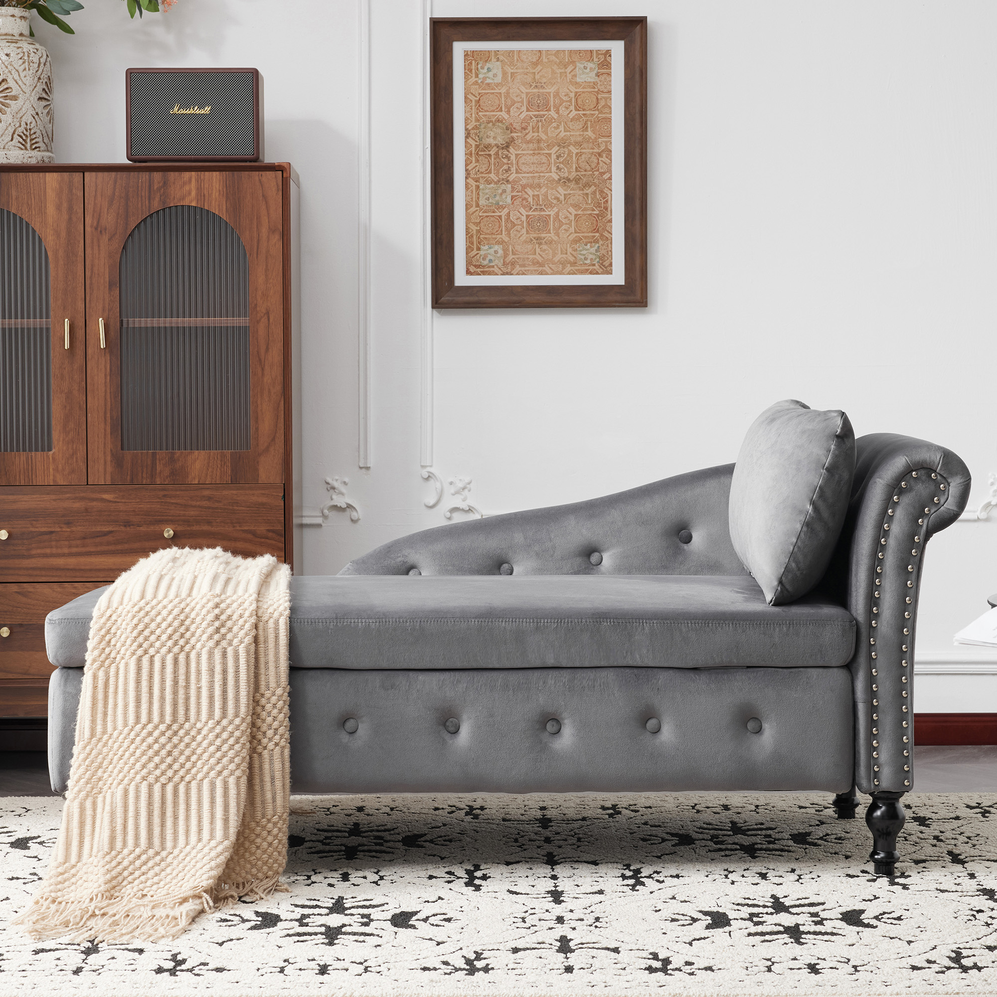 Product Name:Velvet Chaise Lounge Sofa with Storage, Upholstered Chaise lounge Couch with Pillow for Living Room, Modern Nailhead-Trim & Button-tufted Lounge Chair, Bedroom and Office, Right Armrest