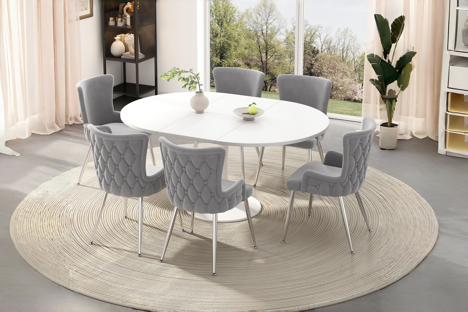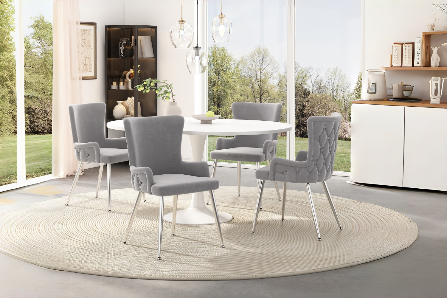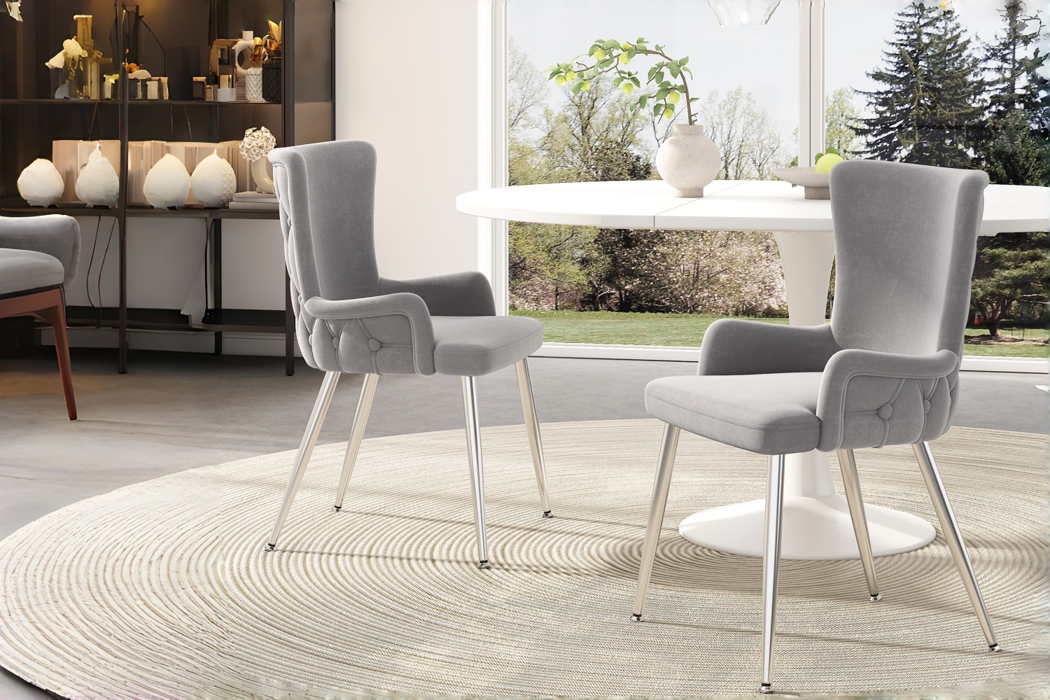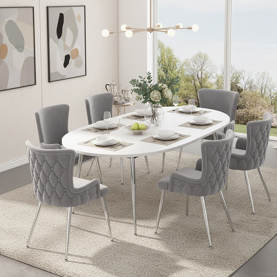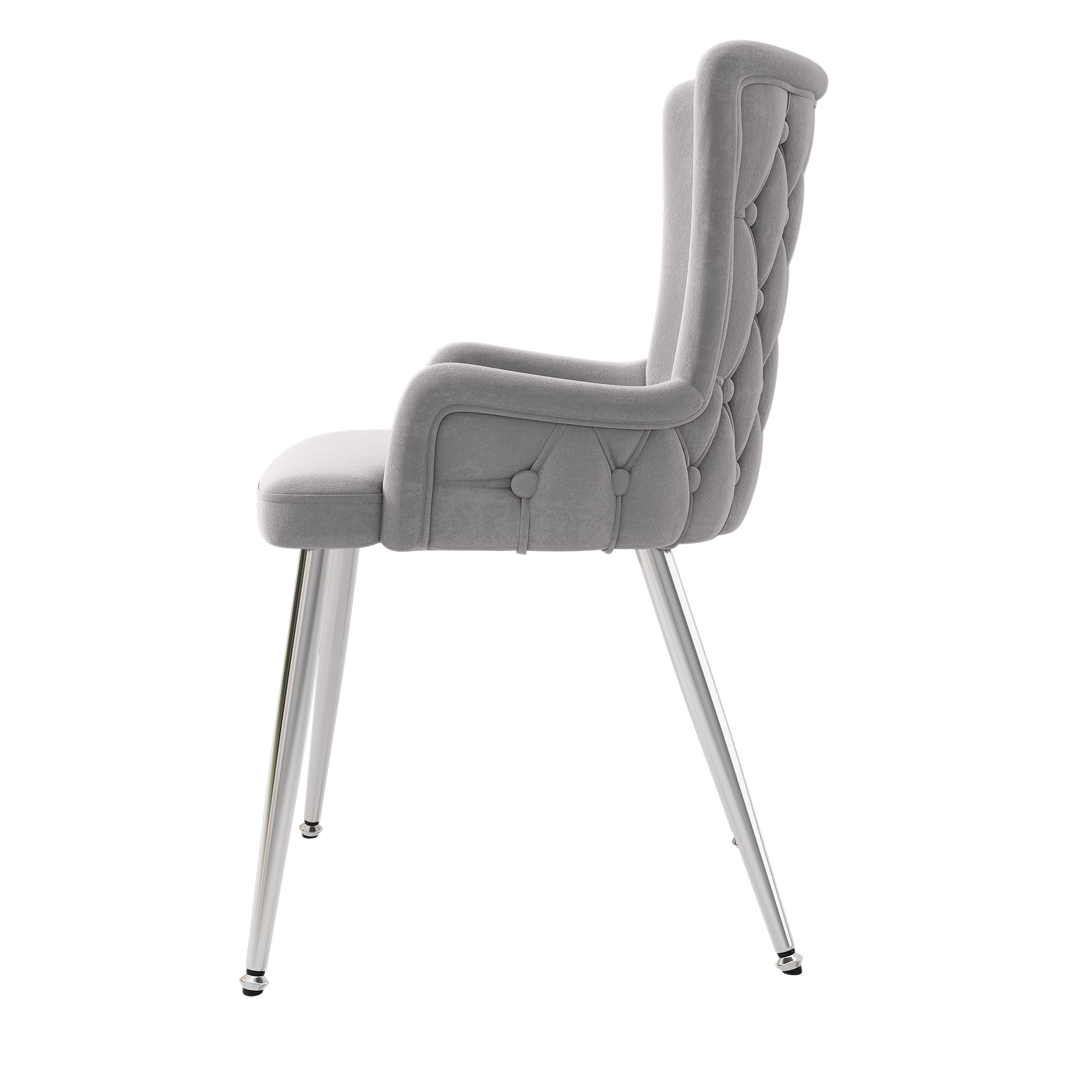 Product Name:Velvet dining chair, set of 2, luxurious living room/bedroom lounge chair with four silver-colored metal support legs, grey